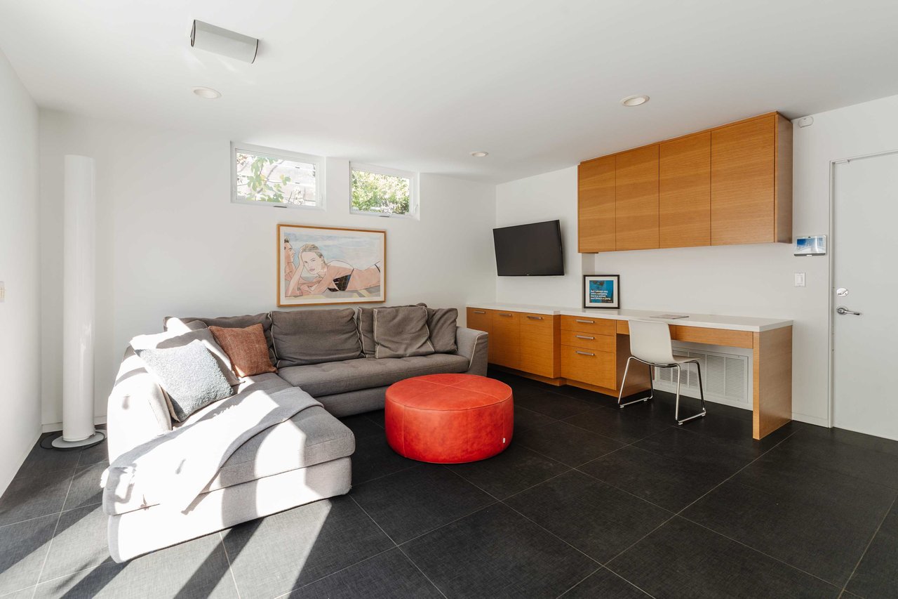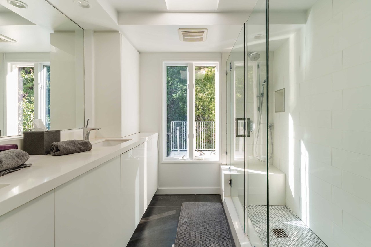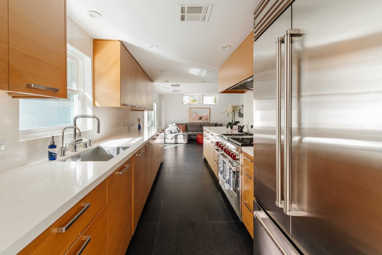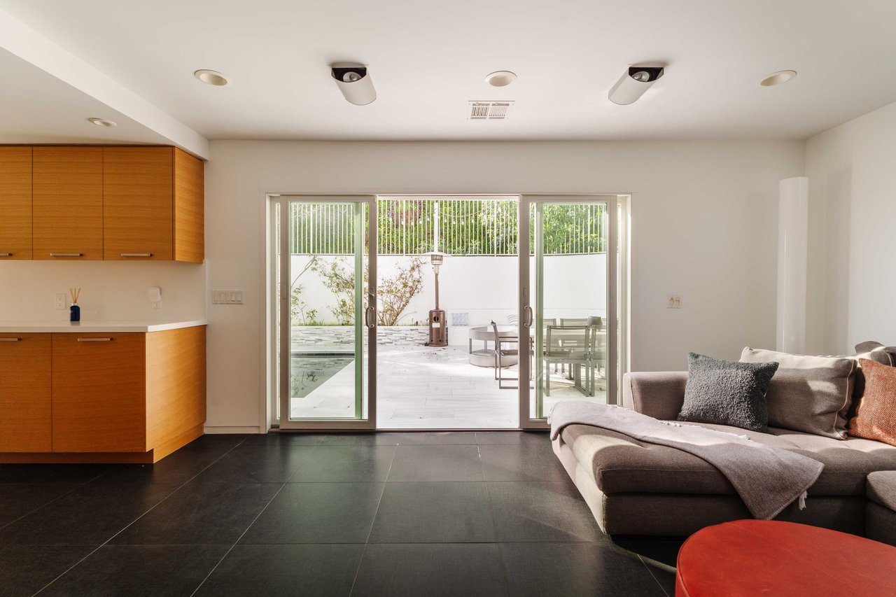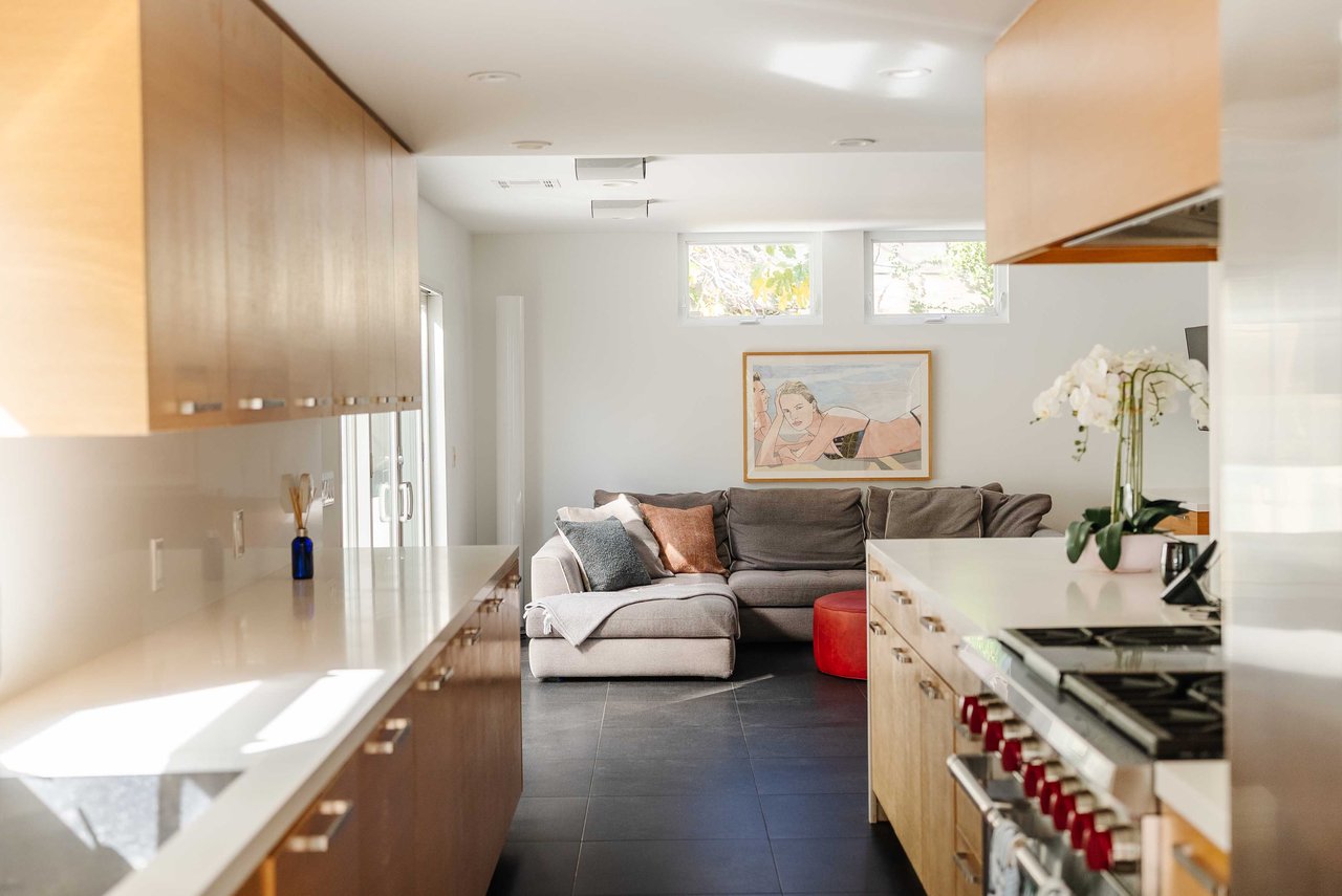 Set in the famed Marquez Knolls, this contemporary residence offers serene privacy in a truly bucolic setting. Guests are welcomed by a stately foyer with gallery walls, leading into an expansive open floorplan designed for seamless entertaining. The great room, anchored by a sophisticated fireplace and formal dining area, is bathed in natural light from large southern-facing windows. The chef’s kitchen is a masterclass in design, featuring a Wolf 6-burner double oven, Sub-Zero fridge/freezer, and custom cabinetry centered around a striking waterfall countertop with informal dining. An inviting family room adjoins the kitchen, creating a perfect hub for daily life. Upstairs, the primary suite serves as a private sanctuary, detailed with custom built-ins, skylights, and a large custom closet. The spa-like ensuite bath features dual vanities and an oversized shower with a bench. Three additional bedrooms off the landing offer breathtaking canyon and ocean vistas, sharing a bright, designer bathroom with tub and shower. The resort-caliber backyard is an entertainer's dream, featuring a saltwater pool with a baja shelf, a spa, and a built-in firepit lounge. A dedicated BBQ station services the alfresco dining terrace, while a lush, fenced lawn wraps around the home. The home is completed by a 2-car garage that also functions as a gym along with a laundry area. Located in a tight-knit community known for its resilience and charm, this home offers the quintessential Palisades lifestyle.