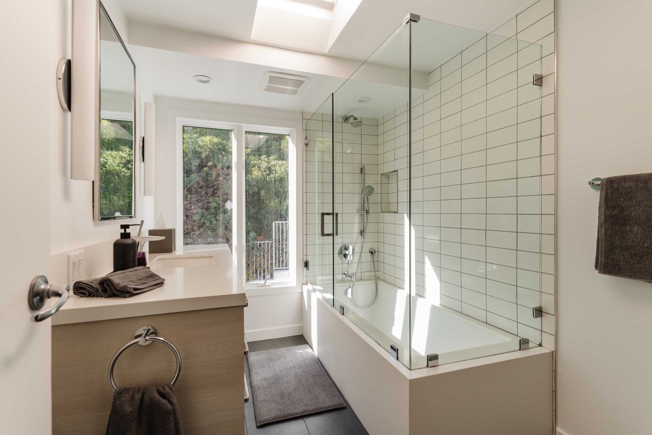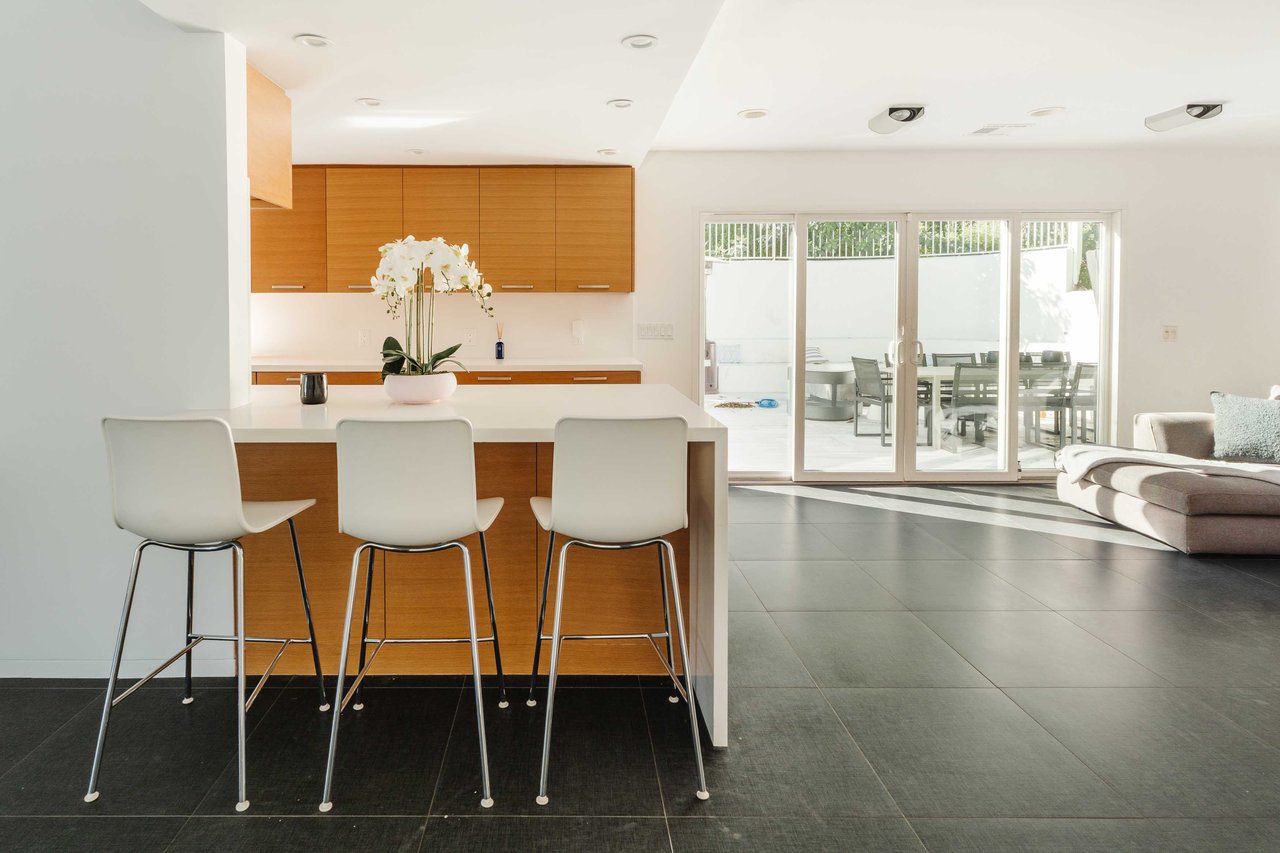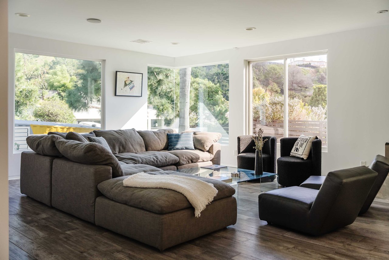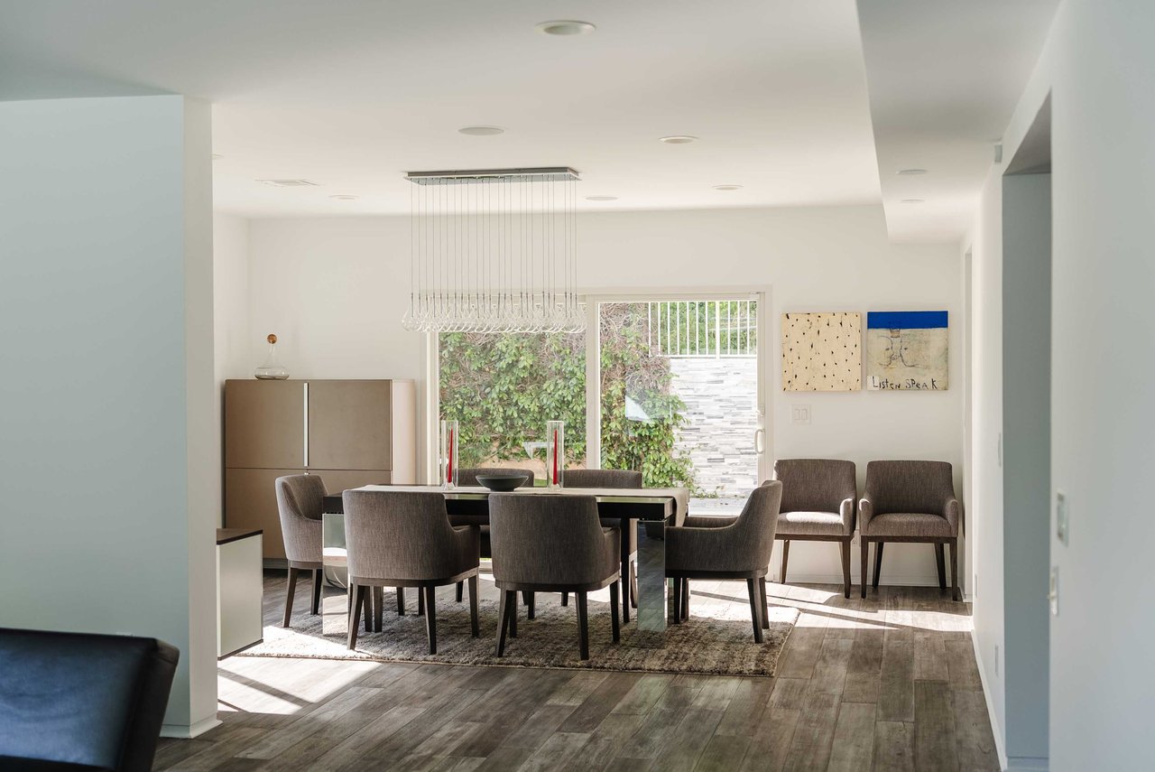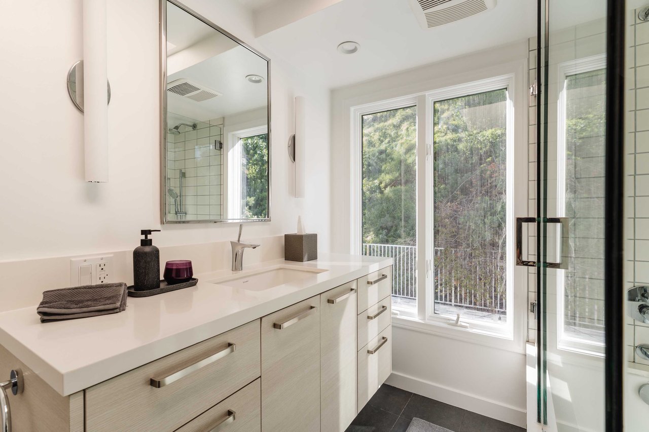 Set in the famed Marquez Knolls, this contemporary residence offers serene privacy in a truly bucolic setting. Guests are welcomed by a stately foyer with gallery walls, leading into an expansive open floorplan designed for seamless entertaining. The great room, anchored by a sophisticated fireplace and formal dining area, is bathed in natural light from large southern-facing windows. The chef’s kitchen is a masterclass in design, featuring a Wolf 6-burner double oven, Sub-Zero fridge/freezer, and custom cabinetry centered around a striking waterfall countertop with informal dining. An inviting family room adjoins the kitchen, creating a perfect hub for daily life. Upstairs, the primary suite serves as a private sanctuary, detailed with custom built-ins, skylights, and a large custom closet. The spa-like ensuite bath features dual vanities and an oversized shower with a bench. Three additional bedrooms off the landing offer breathtaking canyon and ocean vistas, sharing a bright, designer bathroom with tub and shower. The resort-caliber backyard is an entertainer's dream, featuring a saltwater pool with a baja shelf, a spa, and a built-in firepit lounge. A dedicated BBQ station services the alfresco dining terrace, while a lush, fenced lawn wraps around the home. The home is completed by a 2-car garage that also functions as a gym along with a laundry area. Located in a tight-knit community known for its resilience and charm, this home offers the quintessential Palisades lifestyle.