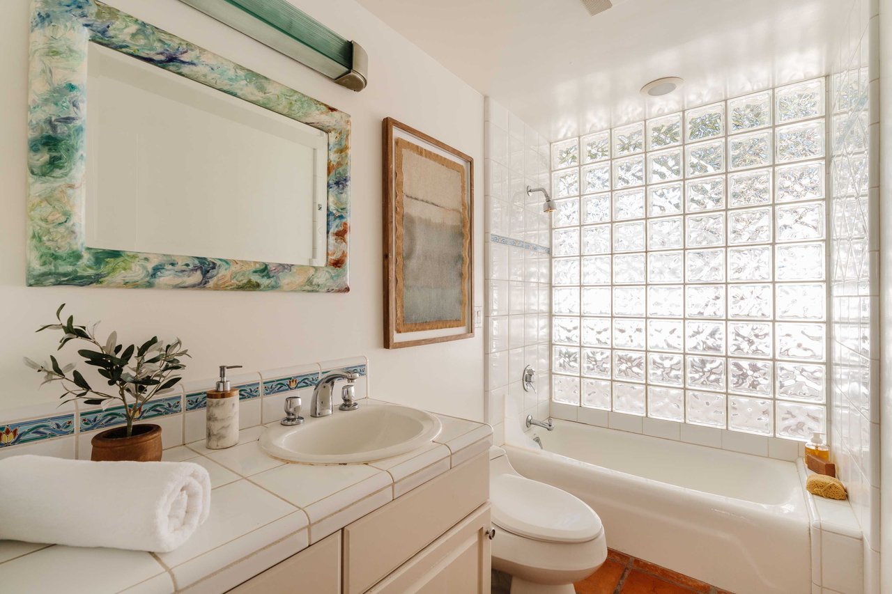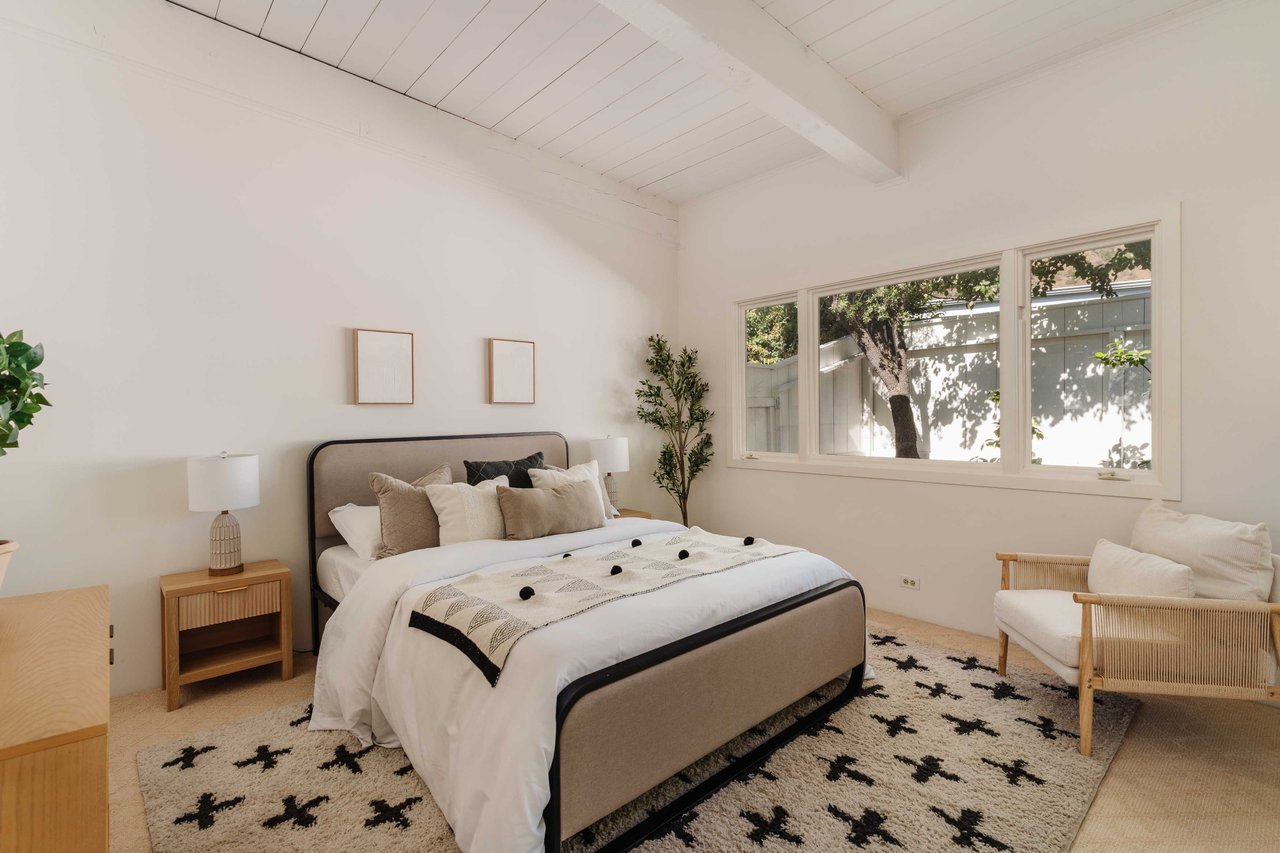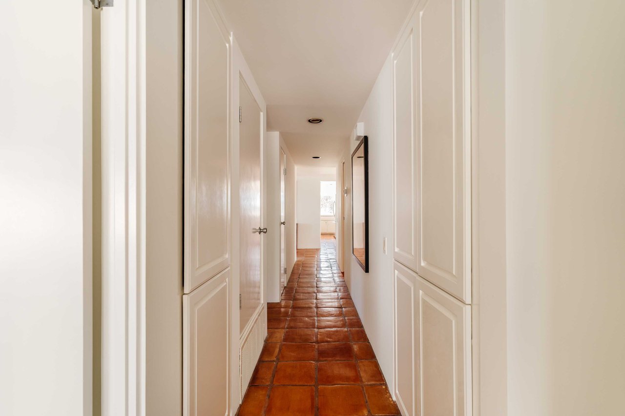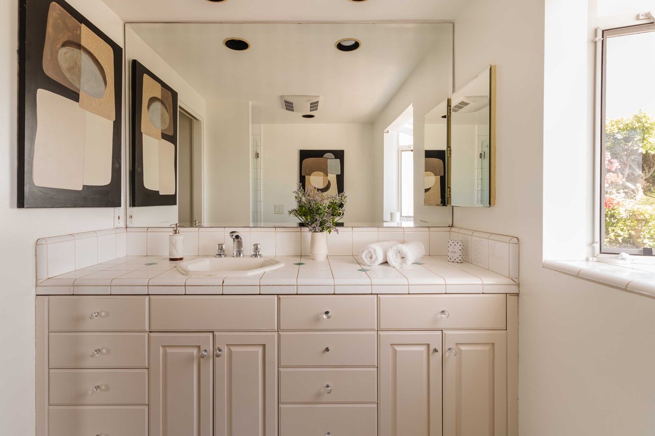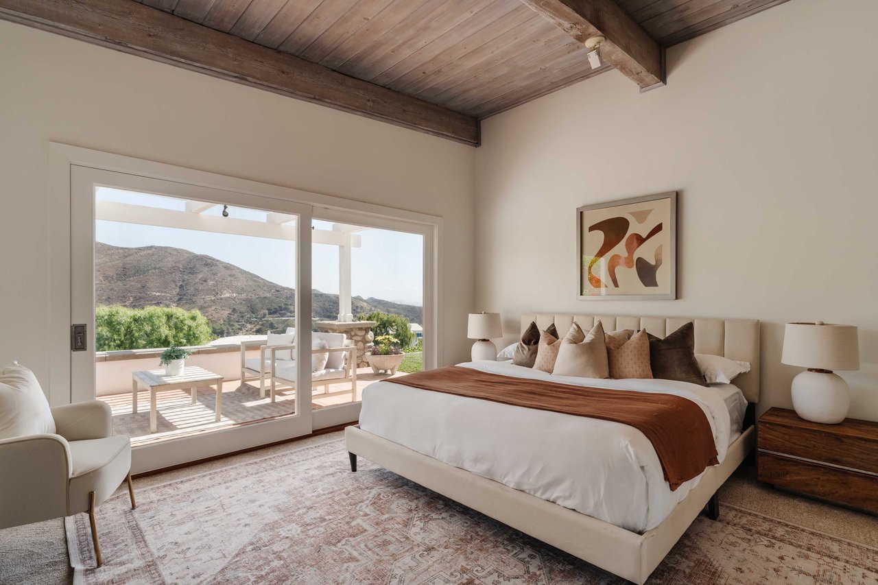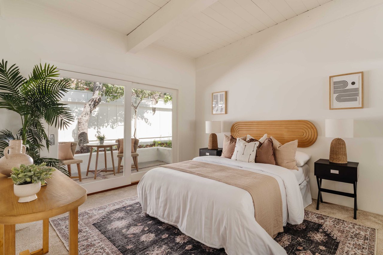 This beautiful, single-level, midcentury residence blends panoramic views from downtown to the coastline and ocean - all on a street-to-street, corner lot set above the neighborhood on an over 12,000-square-foot promontory. Originally designed in 1973 to bring the vistas inside, the home showcases vaulted ceilings with exposed beams, walls of glass, and more. Through the gated entry, guests are welcomed past an outdoor foyer with a water feature into the open layout heart of the home; a formal living room with fireplace, original kitchen, and dining room - all oriented toward the views. Past the den (which could serve as a fourth bedroom), discover three bedrooms, including the primary suite with two closets, a bath with a shower and large vanity, and a private patio overlooking the views. The two guest bedrooms down the hallway share a hall bath with tub. The outdoors wrap around the home with multiple grassy areas, lounging spots, al-fresco dining areas, and newly landscaped grounds that thoughtfully combine mature plantings with fresh additions. Completing the property are a direct-access two-car garage, central air/heat, beautiful tile floors, new carpets in the bedrooms, a powder room, and more. Located off Lachman Lane among many still-standing homes, this stunning residence has been fully remediated and passed post-remediation testing. The property presents an excellent option in its current state, with the added potential to reimagine into the neighborhood’s next great home.