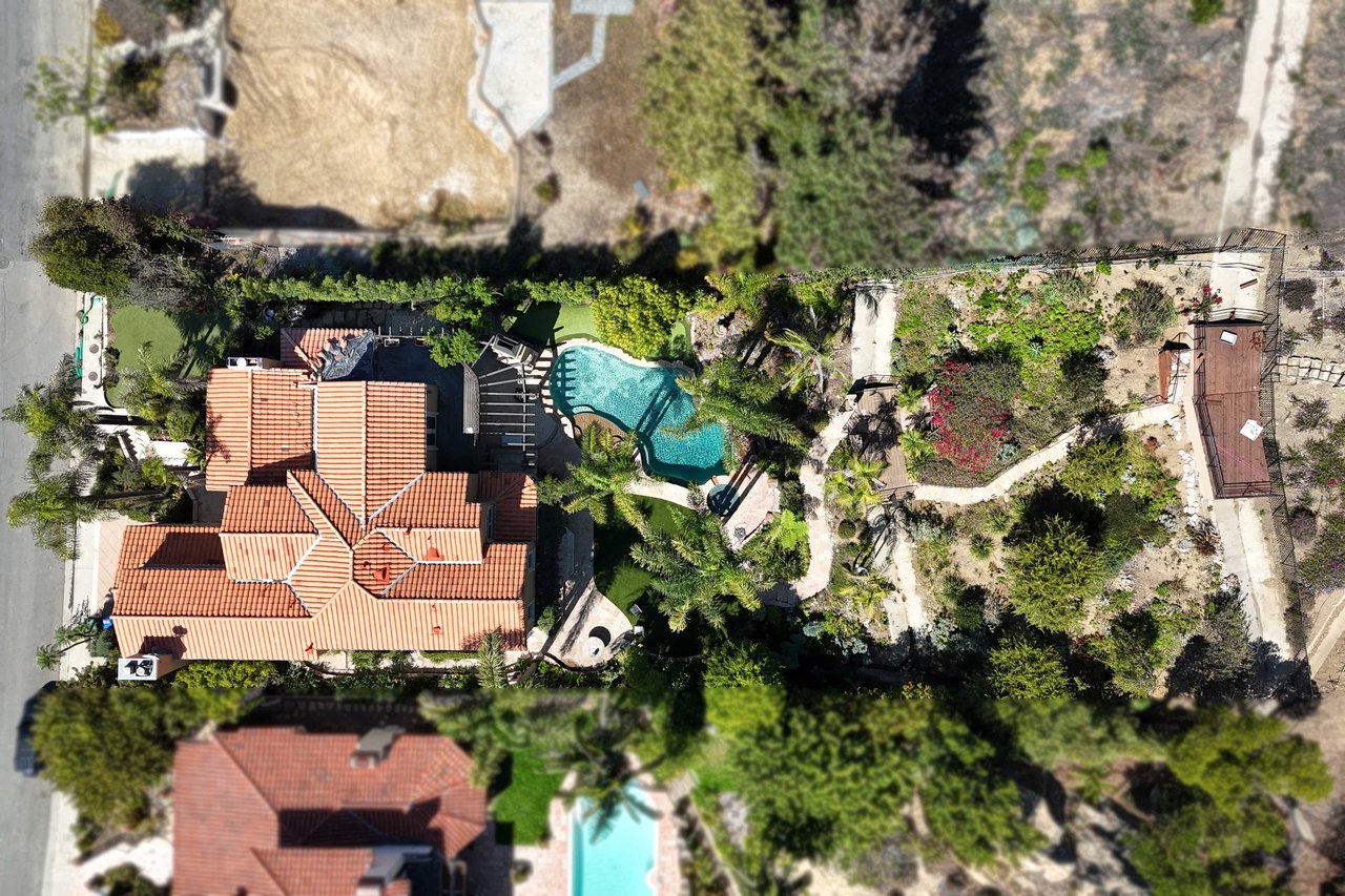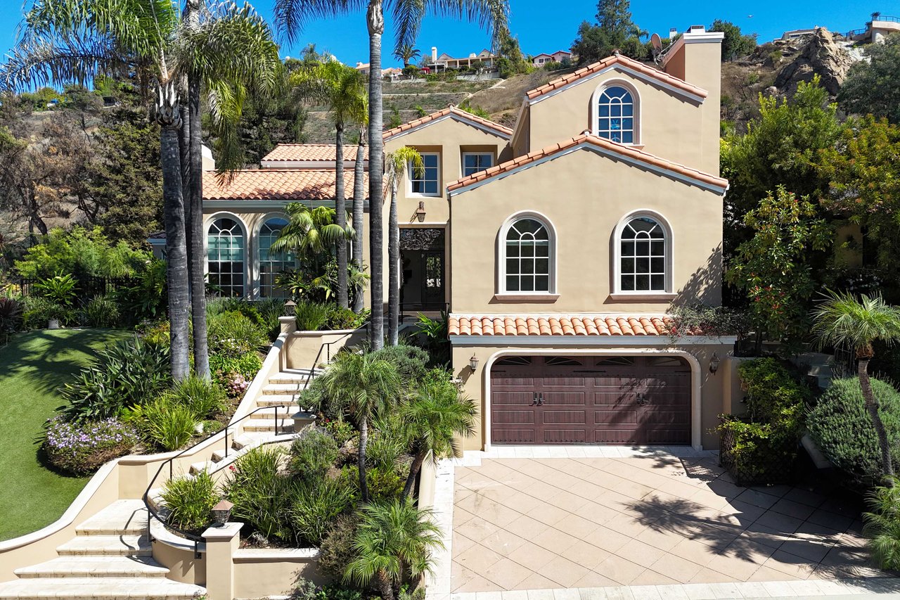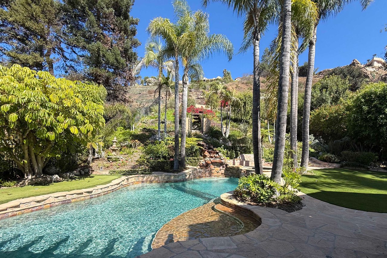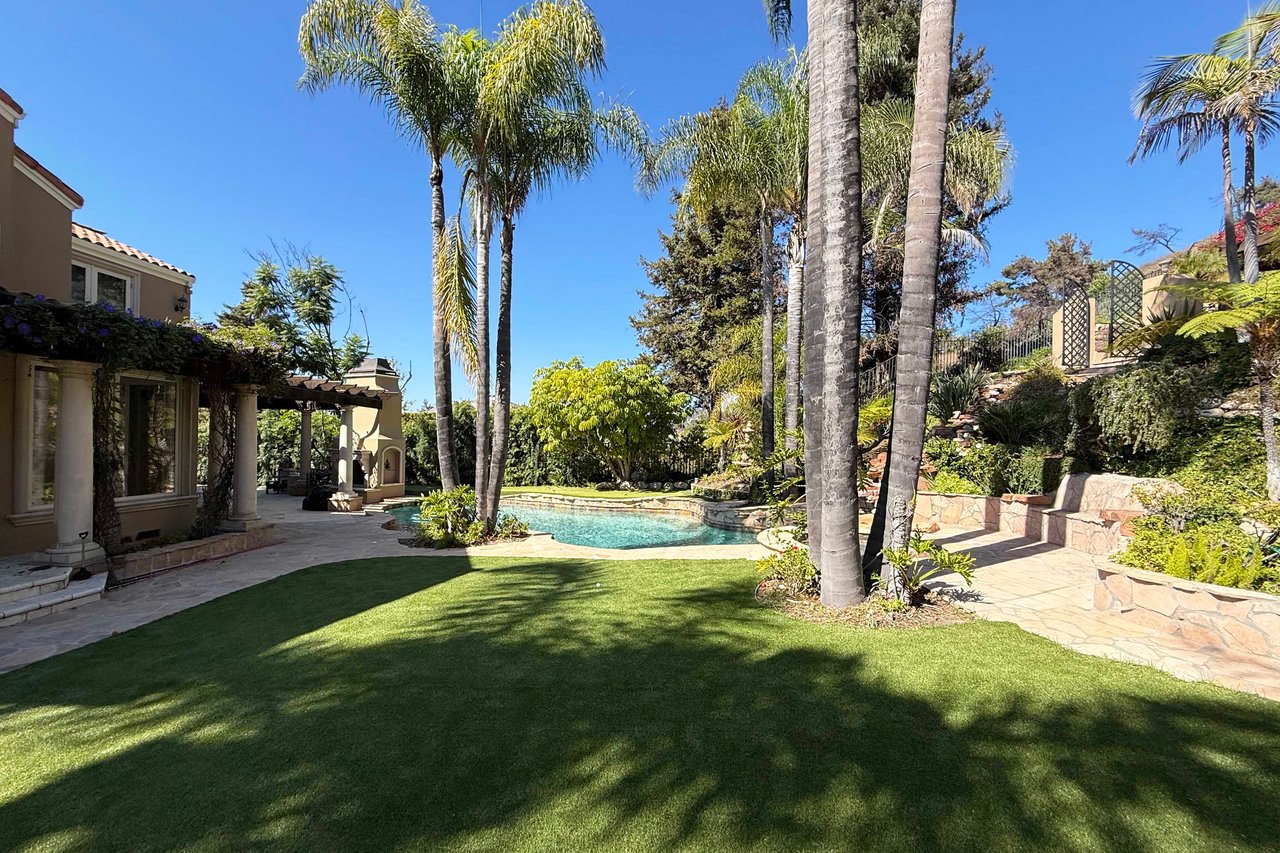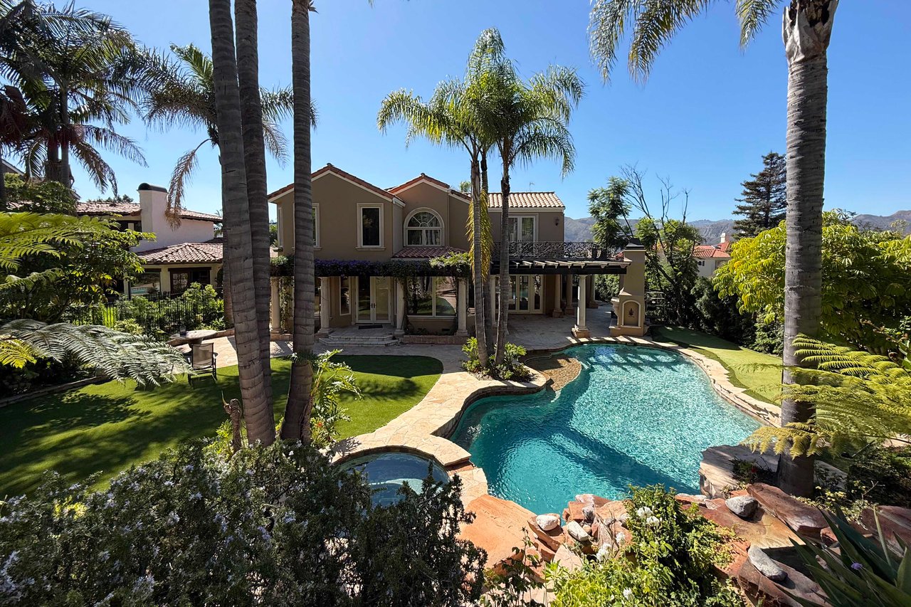 Nestled on a coveted street in the Palisades Highlands, this private residence blends timeless design, thoughtful expansion, and one of the neighborhood’s most exceptional backyards - all on over ¾ of an acre. Guests are welcomed beneath a grand two-story foyer, flanked by a stately formal living room with a fireplace set beneath vaulted, beamed ceilings. Beyond the spacious family room, the chef’s kitchen features dual islands, top-of-the-line appliances and an informal dining area overlooking the serene landscape - opening seamlessly to the backyard. Down the hall, find a large formal dining room, study/office, and a media room with an ensuite bath that can serve equally well as a theater or secondary downstairs guest room. Completing this level are the laundry room, guest room, and direct garage access. Upstairs, discover three bedroom suites, including a stunning primary wing. This expansive retreat offers a large bedroom under vaulted ceilings with backyard views from a private balcony, two walk-in closets, and a luxurious bath with dual vanities, a soaking tub, and an oversized steam shower. One of the guest suites includes its own den/play area that could easily double as a fourth upstairs bedroom or secondary office. The resort-like backyard is a true highlight, showcasing a custom pool and spa, waterfall, putting green, heated loggia with fireplace for dining or lounging, manicured landscaping, BBQ area, and a private walking trail leading to multiple view decks. Residents enjoy access to the Highlands recreation center with tennis courts and a forthcoming clubhouse with pool. With its welcoming atmosphere and strong sense of community, the Highlands continues to thrive - especially on this street, where most homes remained untouched by the fire.