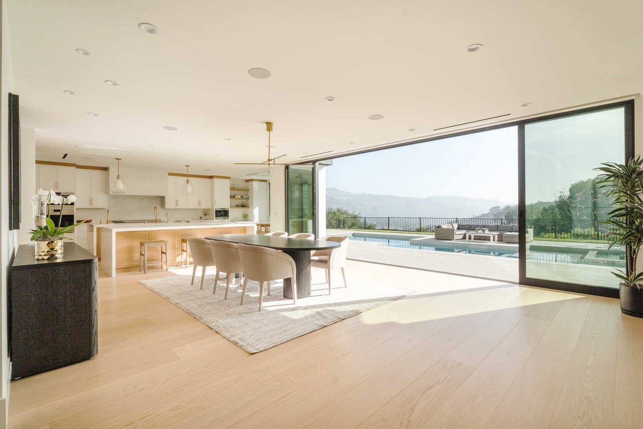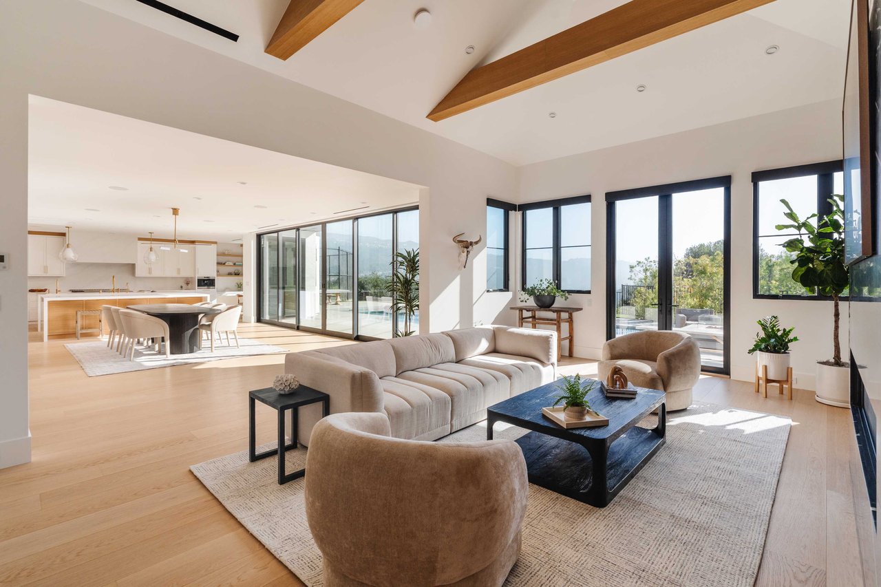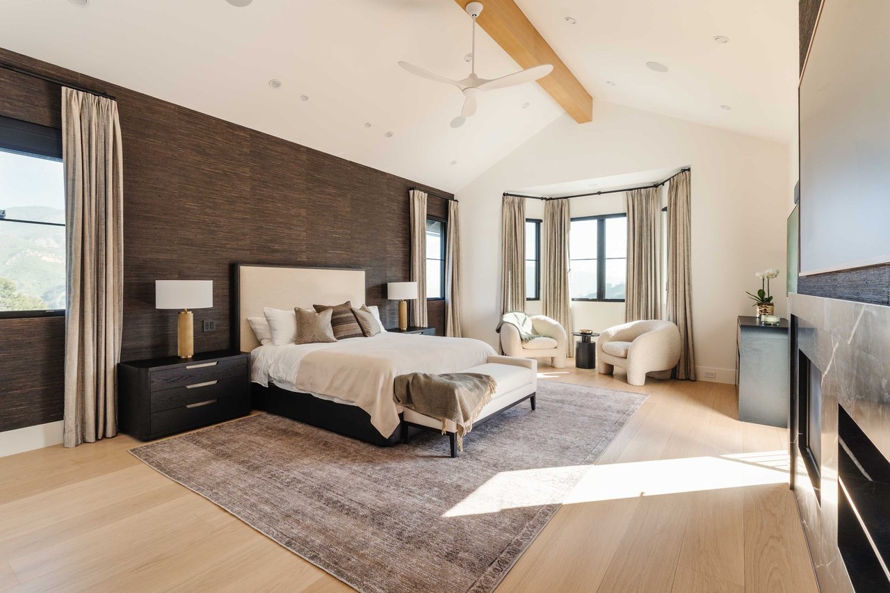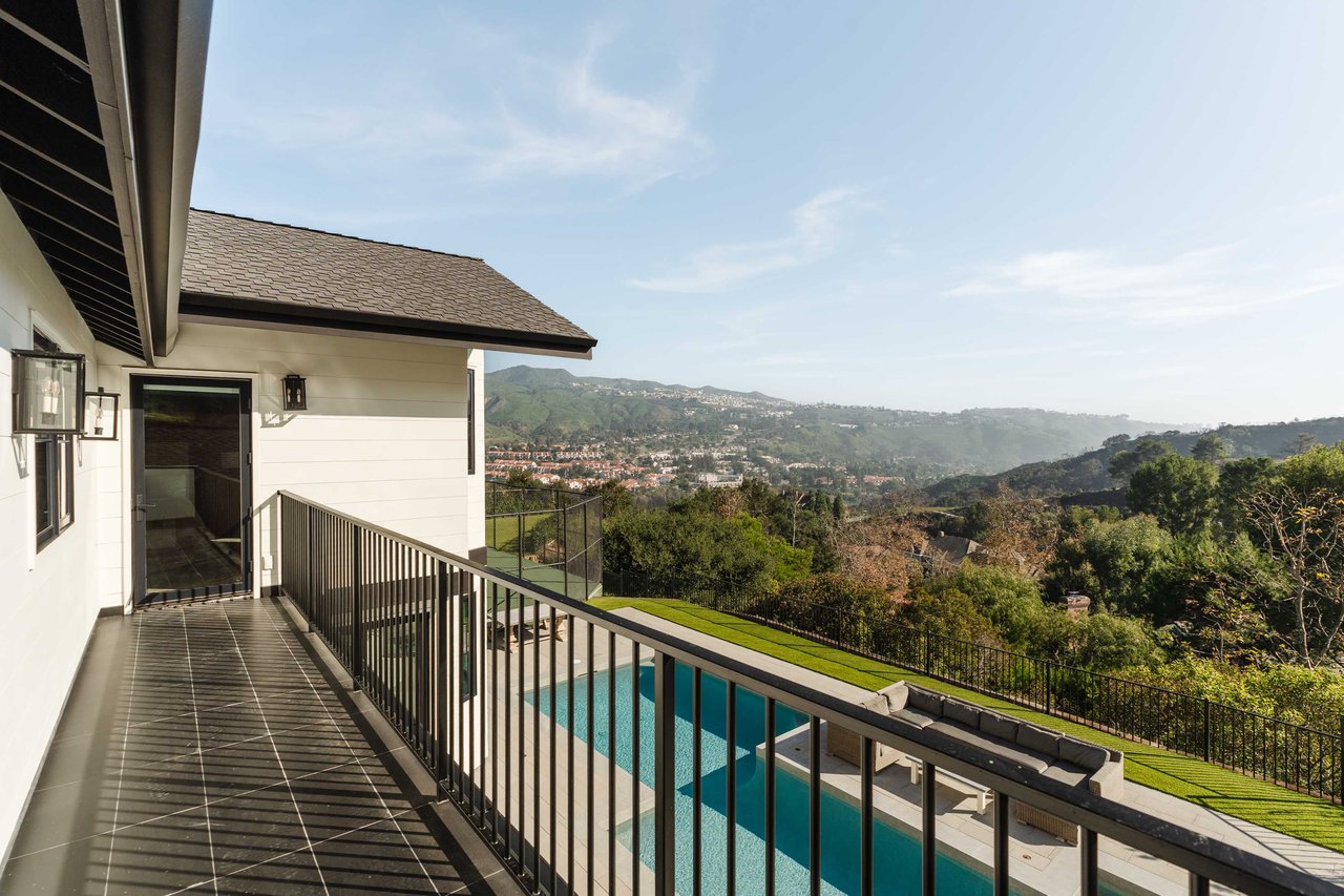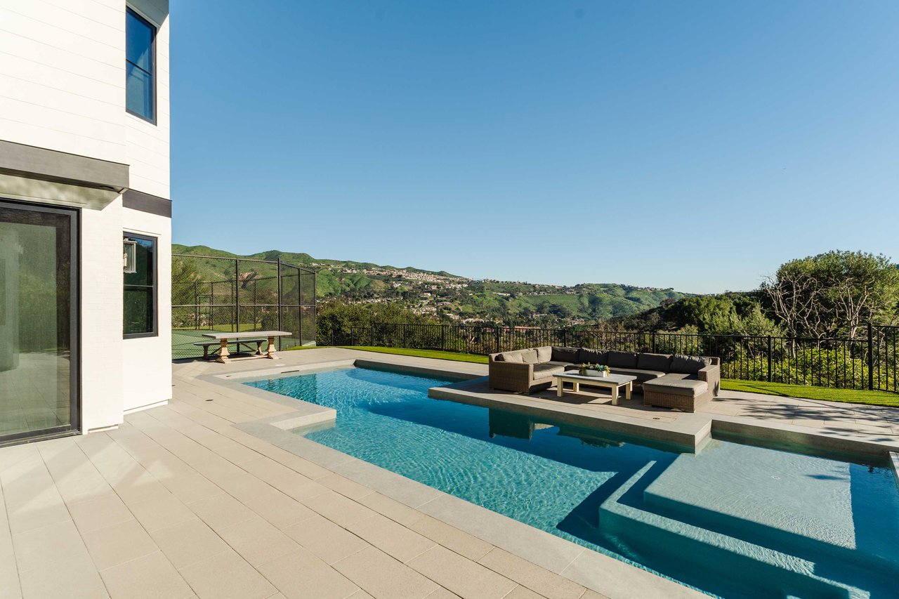 Situated within the exclusive 24-hour guard-gated Country Estates, this designer-done tennis court estate offers an unparalleled blend of security, privacy, and modern luxury. Completely remodeled in 2024, the residence is set on over half an acre of beautifully curated grounds defined by panoramic views. Guests are welcomed under a two-story foyer into the heart of the home. The open floor plan is anchored by a world-class chef’s kitchen featuring dual waterfall islands, a 60-inch La Cornue rangetop, Wolf ovens, Sub-Zero fridges/freezer, and walk-in pantry - all flowing seamlessly into the dining area with massive sliding walls of glass that open to the backyard and views. The family room with wet bar and stunning fireplace also flanks this area. For more formal occasions, the living room impresses with soaring ceilings and a floor-to-ceiling black marble fireplace. The downstairs is completed by a mud room/secondary laundry room, powder room, and guest suite/office that functions as the pool/tennis quarters. Upstairs off of the main landing are four refined suites, led by the spectacular primary suite under vaulted ceilings, featuring a stone fireplace, personal kitchenette, massive walk-in closet, and balcony that flows out to the views. The primary suite’s spa-like bathroom boasts dual glass showers illuminated by skylights, dual vanities, a gorgeous standalone tub, and heated flooring. Every guest room is thoughtfully appointed with large bedrooms, curated bathrooms, and plentiful closet space. The upstairs is completed by a custom movie theater with stadium seating and bonus/popcorn room, and generously sized laundry room. The backyard serves as a private resort that pours out to the views over a sparkling pool, spa, and fire-pit lounge - providing the ultimate vantage point for dramatic vistas day or night. The backyard also features a coveted North-South tennis court, fully equipped with championship lights, ball machine, serving machine, and ball mower - ideal for professionals and enthusiasts alike. The home also boasts cutting-edge smart home technology, Frame TVs in nearly every room, a full Lutron lighting system, integrated security, mutil-zone HVAC, and a three-car garage with EV charging. This is a rare opportunity to own one of the most pristine properties, not just in the Palisades, but on the Westside.
