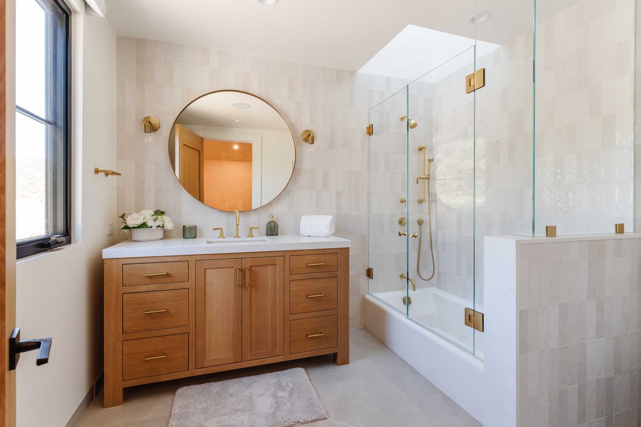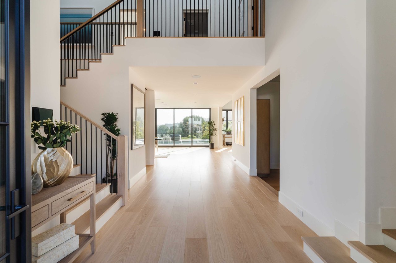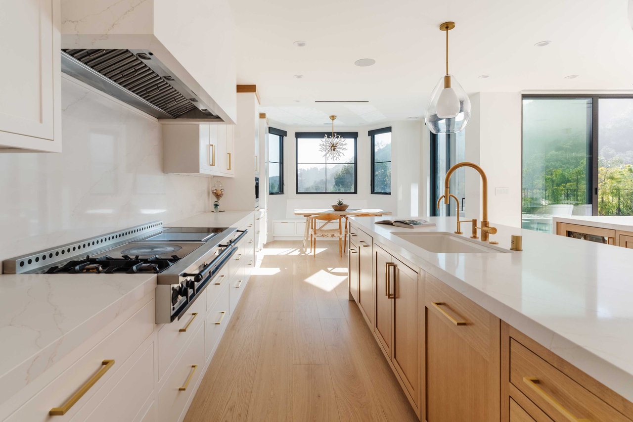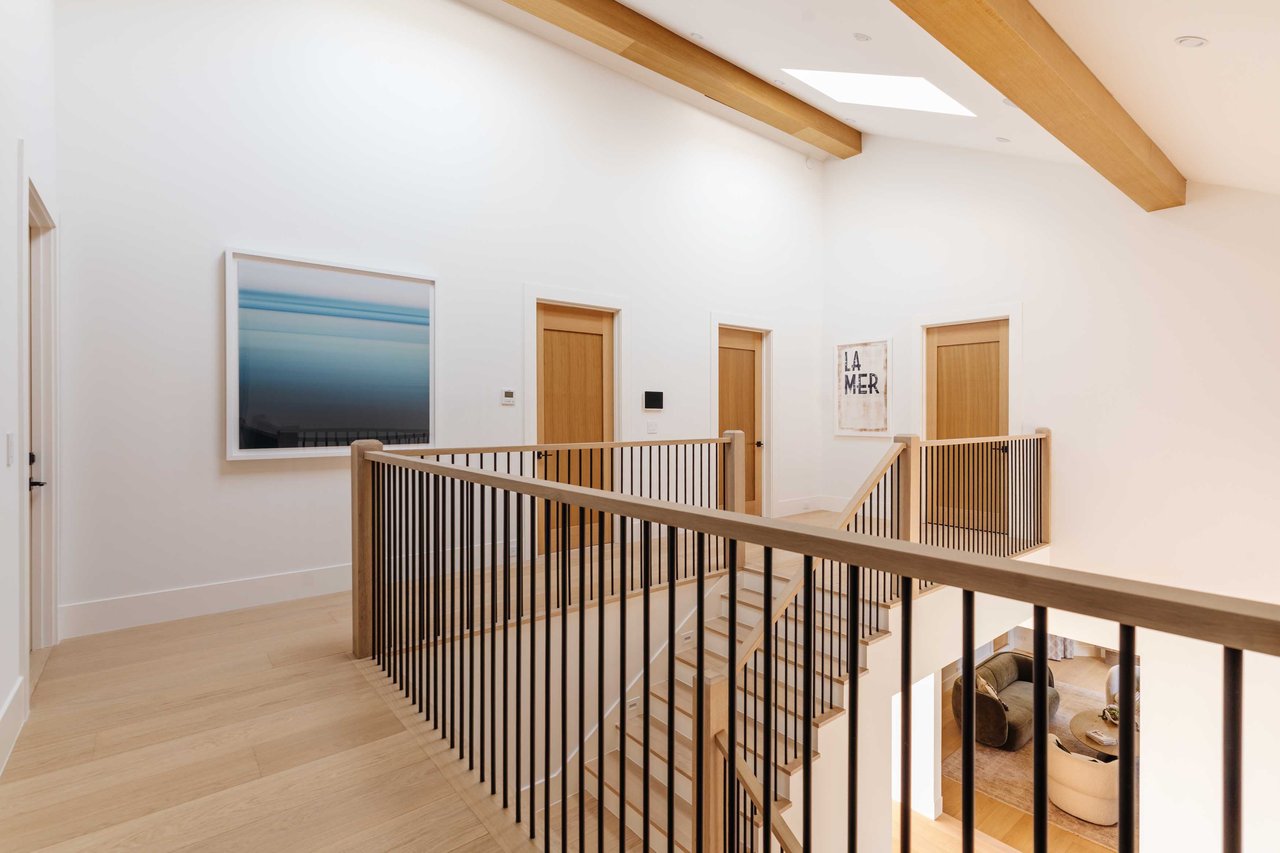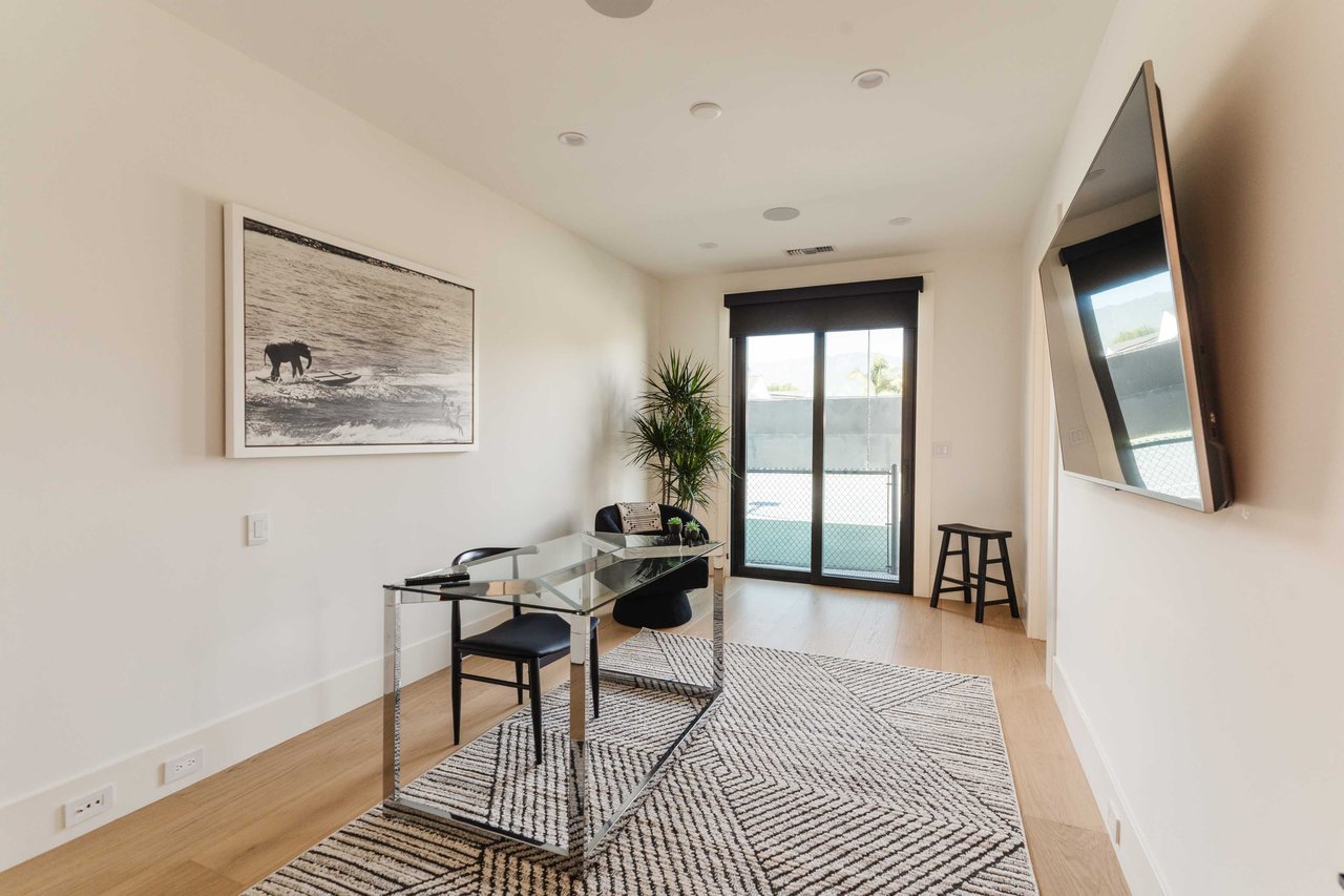 Situated within the exclusive 24-hour guard-gated Country Estates, this designer-done tennis court estate offers an unparalleled blend of security, privacy, and modern luxury. Completely remodeled in 2024, the residence is set on over half an acre of beautifully curated grounds defined by panoramic views. Guests are welcomed under a two-story foyer into the heart of the home. The open floor plan is anchored by a world-class chef’s kitchen featuring dual waterfall islands, a 60-inch La Cornue rangetop, Wolf ovens, Sub-Zero fridges/freezer, and walk-in pantry - all flowing seamlessly into the dining area with massive sliding walls of glass that open to the backyard and views. The family room with wet bar and stunning fireplace also flanks this area. For more formal occasions, the living room impresses with soaring ceilings and a floor-to-ceiling black marble fireplace. The downstairs is completed by a mud room/secondary laundry room, powder room, and guest suite/office that functions as the pool/tennis quarters. Upstairs off of the main landing are four refined suites, led by the spectacular primary suite under vaulted ceilings, featuring a stone fireplace, personal kitchenette, massive walk-in closet, and balcony that flows out to the views. The primary suite’s spa-like bathroom boasts dual glass showers illuminated by skylights, dual vanities, a gorgeous standalone tub, and heated flooring. Every guest room is thoughtfully appointed with large bedrooms, curated bathrooms, and plentiful closet space. The upstairs is completed by a custom movie theater with stadium seating and bonus/popcorn room, and generously sized laundry room. The backyard serves as a private resort that pours out to the views over a sparkling pool, spa, and fire-pit lounge - providing the ultimate vantage point for dramatic vistas day or night. The backyard also features a coveted North-South tennis court, fully equipped with championship lights, ball machine, serving machine, and ball mower - ideal for professionals and enthusiasts alike. The home also boasts cutting-edge smart home technology, Frame TVs in nearly every room, a full Lutron lighting system, integrated security, mutil-zone HVAC, and a three-car garage with EV charging. This is a rare opportunity to own one of the most pristine properties, not just in the Palisades, but on the Westside.