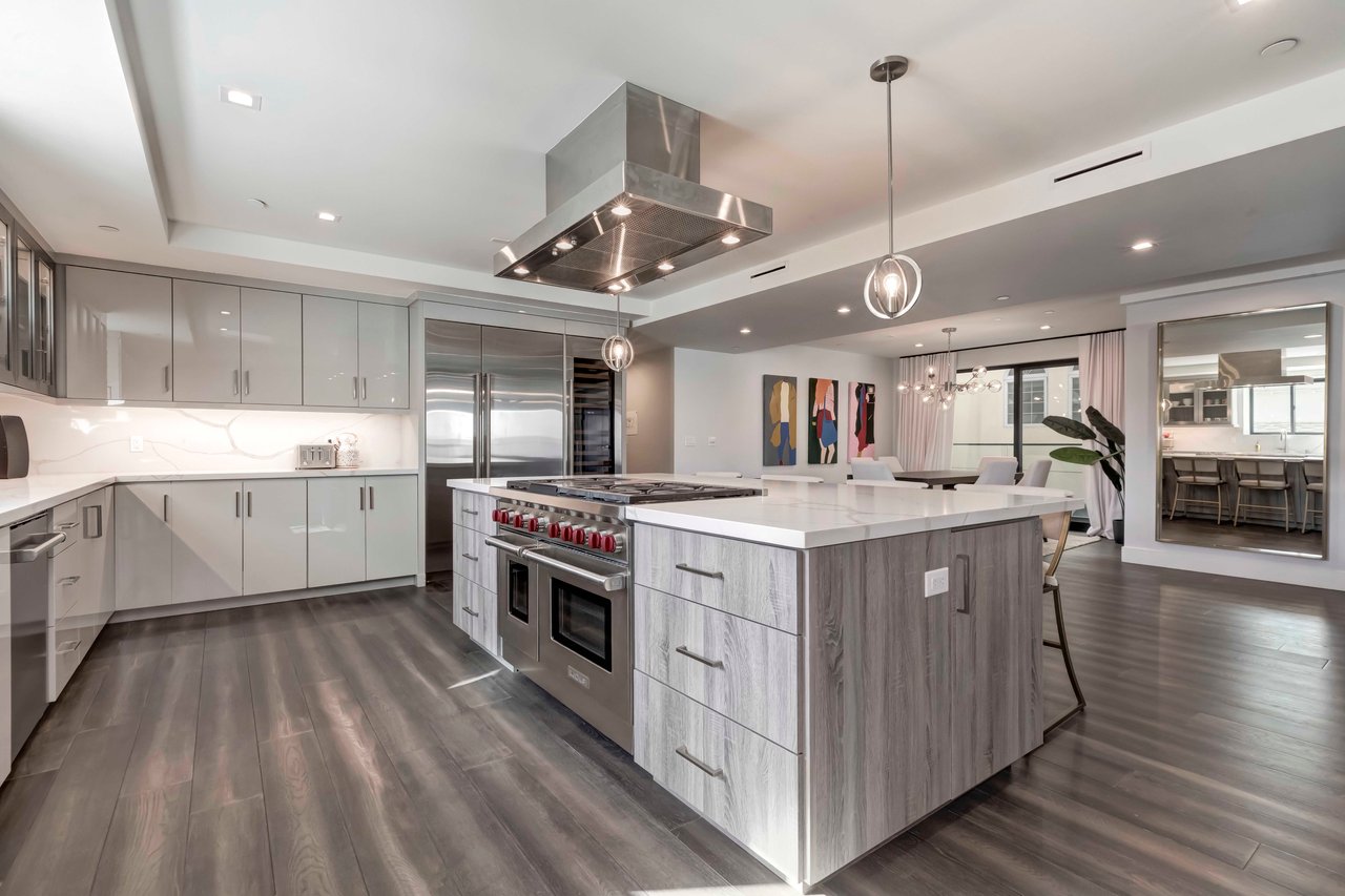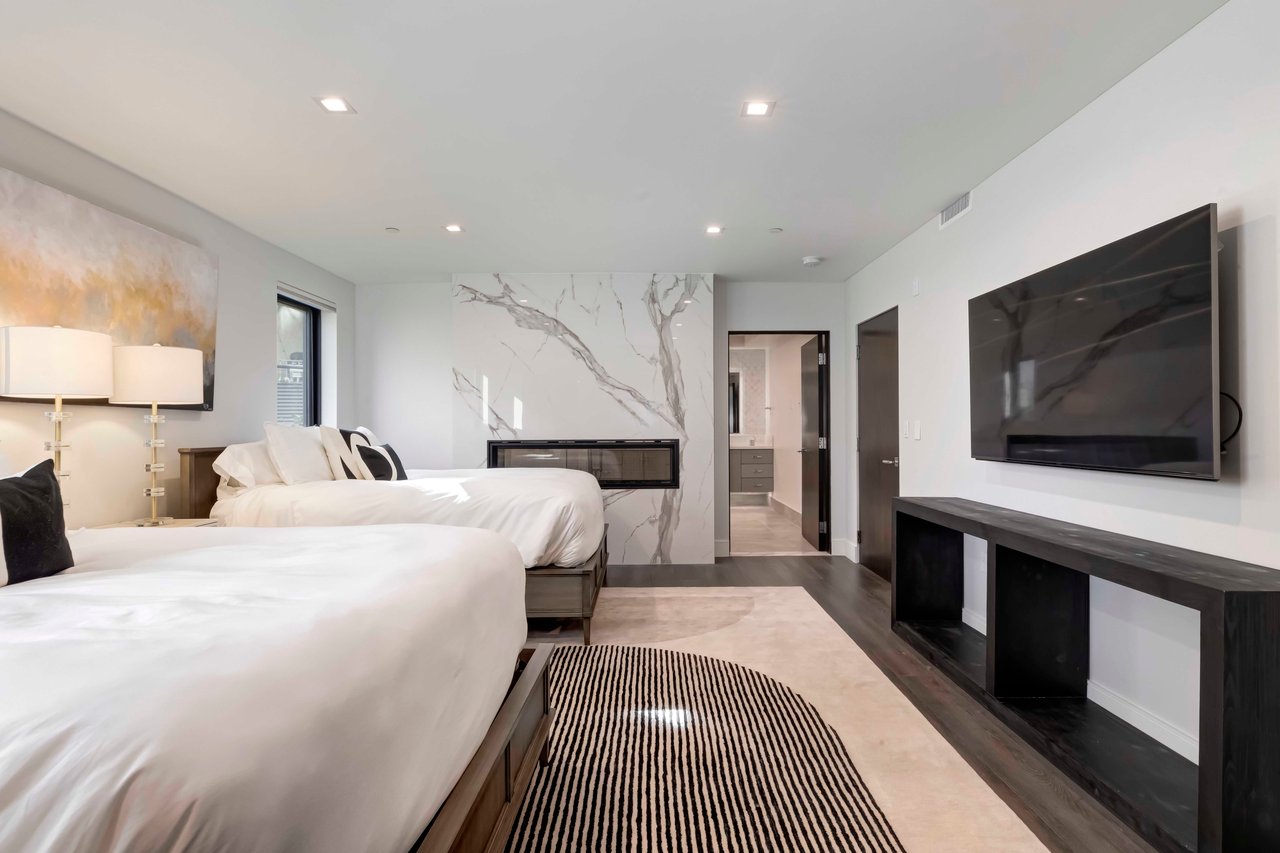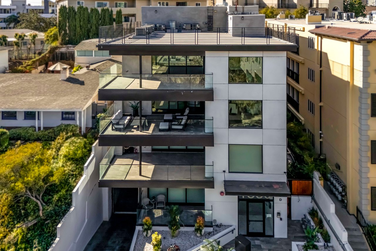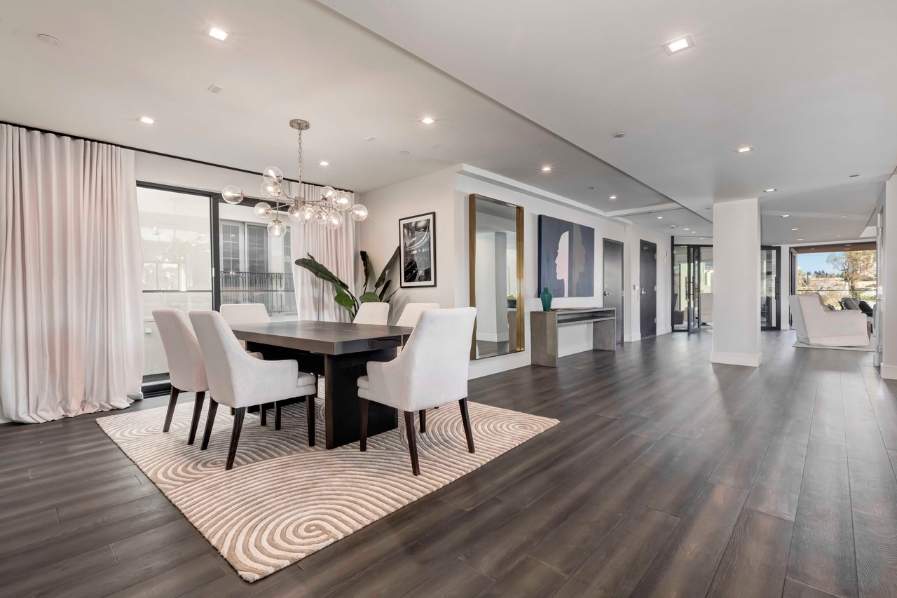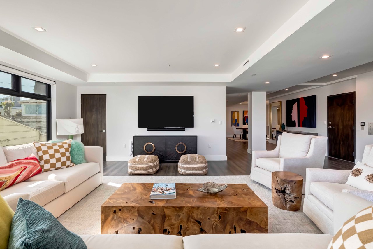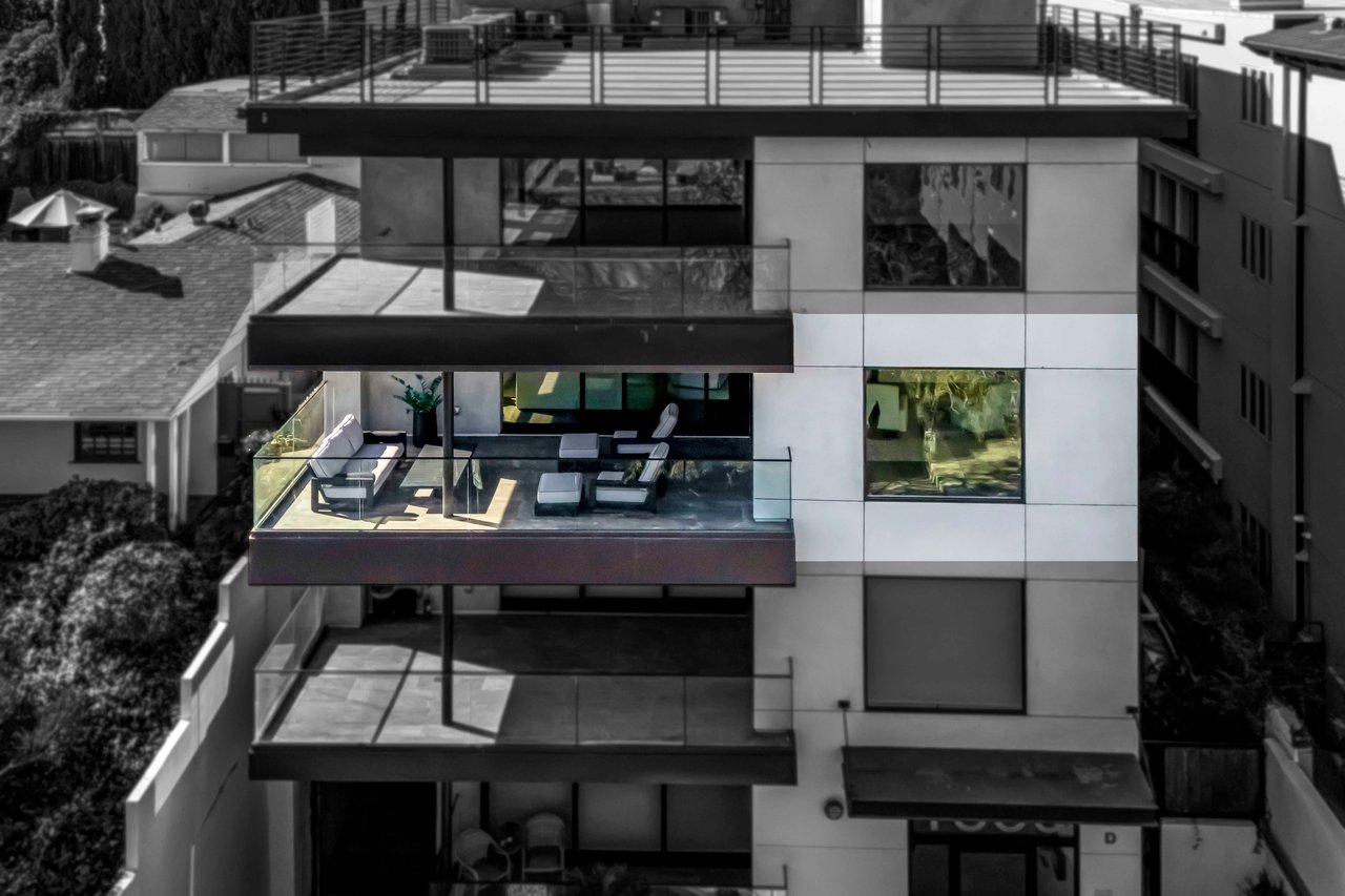 Set within a luxurious four-residence building, this bespoke contemporary home offers nearly 3,000 SF of refined living on its own floor with no shared walls. Guests are welcomed into the residence via a direct-access elevator. The grand, light-filled great room is anchored by wide-plank hardwood floors and expansive glass doors that seamlessly open to a generous terrace with captivating eastern views toward Century City. Designed for both everyday comfort and sophisticated entertaining, the layout includes a spacious living area and a glass-enclosed office. The impressive chef’s kitchen boasts professional-grade Wolf appliances, a Sub-Zero refrigerator, dual ovens, a 60-bottle wine fridge, an oversized island with bar seating, and custom cabinetry. A charming dining area sits adjacent, perfect for intimate dinners or festive gatherings. The bedroom wing hosts the stately primary suite featuring a double-sided fireplace, an expansive walk-in closet, and a spa-like bath appointed with floating dual vanities, a freestanding soaking tub, and an oversized glass shower. Additional highlights include a stylish powder room, side-by-side laundry, abundant storage, and dual-zone HVAC. Perfectly positioned moments from the Century City, Beverly Hills dining and boutiques, and world-class golf at LACC and Rancho Park. This move-in-ready residence delivers elevated living at its finest - offering privacy, scale, and style without the upkeep of a single-family home.