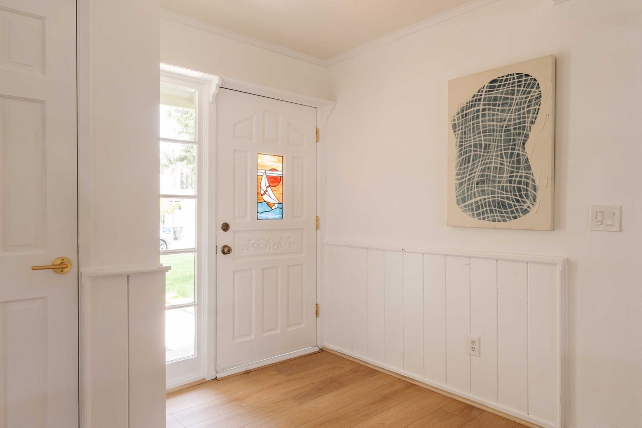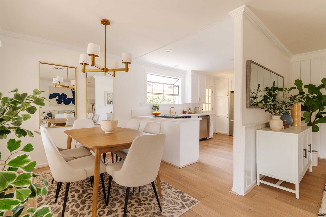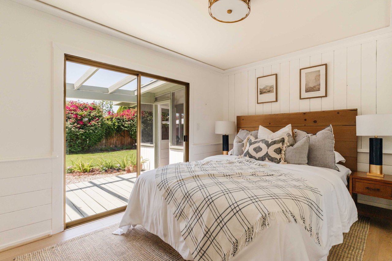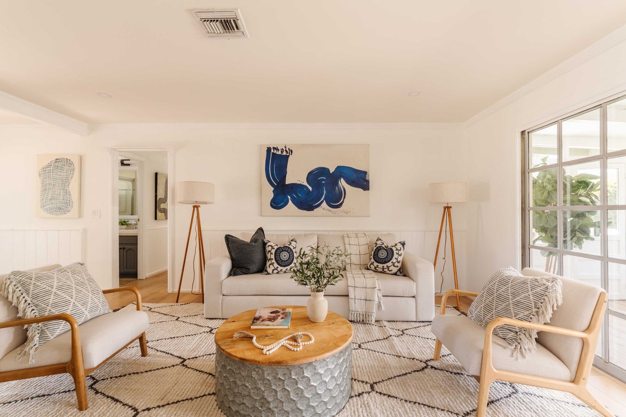 This recently renovated California ranch home offers an inviting presence from every angle. The single-story design beckons you even before stepping inside. A well-manicured exterior highlighted by a spacious grassy lawn and vibrant landscaping guides you to the welcoming entrance. Inside, the thoughtfully designed floor plan features three bedrooms, two bathrooms, plus a versatile enclosed sunroom off the home's main living area. The living room is illuminated by abundant natural light and complemented by soft, neutral tones. The newly updated kitchen is equipped with stainless steel appliances and quartz countertops. An abundance of cabinets and countertop space makes this area functionally fresh. Enhancing your overall living experience is the versatile sunroom, which seamlessly connects indoor living with the backyard. The backyard provides a peaceful retreat with tall hedges for privacy. The grassy lawn is the centerpiece, surrounded by vibrant greenery and colorful flowers along the borders. Mature trees and lush hedges further enhance the sense of seclusion, making it an excellent space for outdoor entertaining or quiet relaxation. The backyard's multiple seating areas and mature plantings create a private sanctuary for outdoor living. Additional features include a new roof, contemporary flooring, stainless steel appliances, central A/C, fresh paint, two-car garage, and space for an RV or boat off the alley. Located in the award-winning Welby Way/El Camino School District and close to Calabasas Commons, Knapp Ranch, Topanga Social, and the new LA Rams Village at Warner Center.
