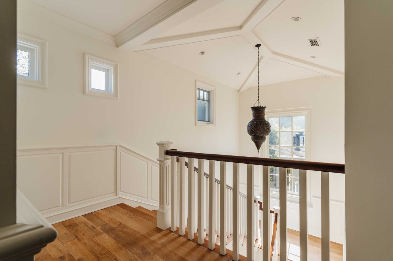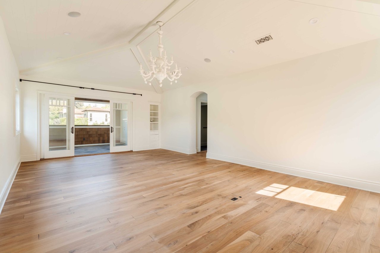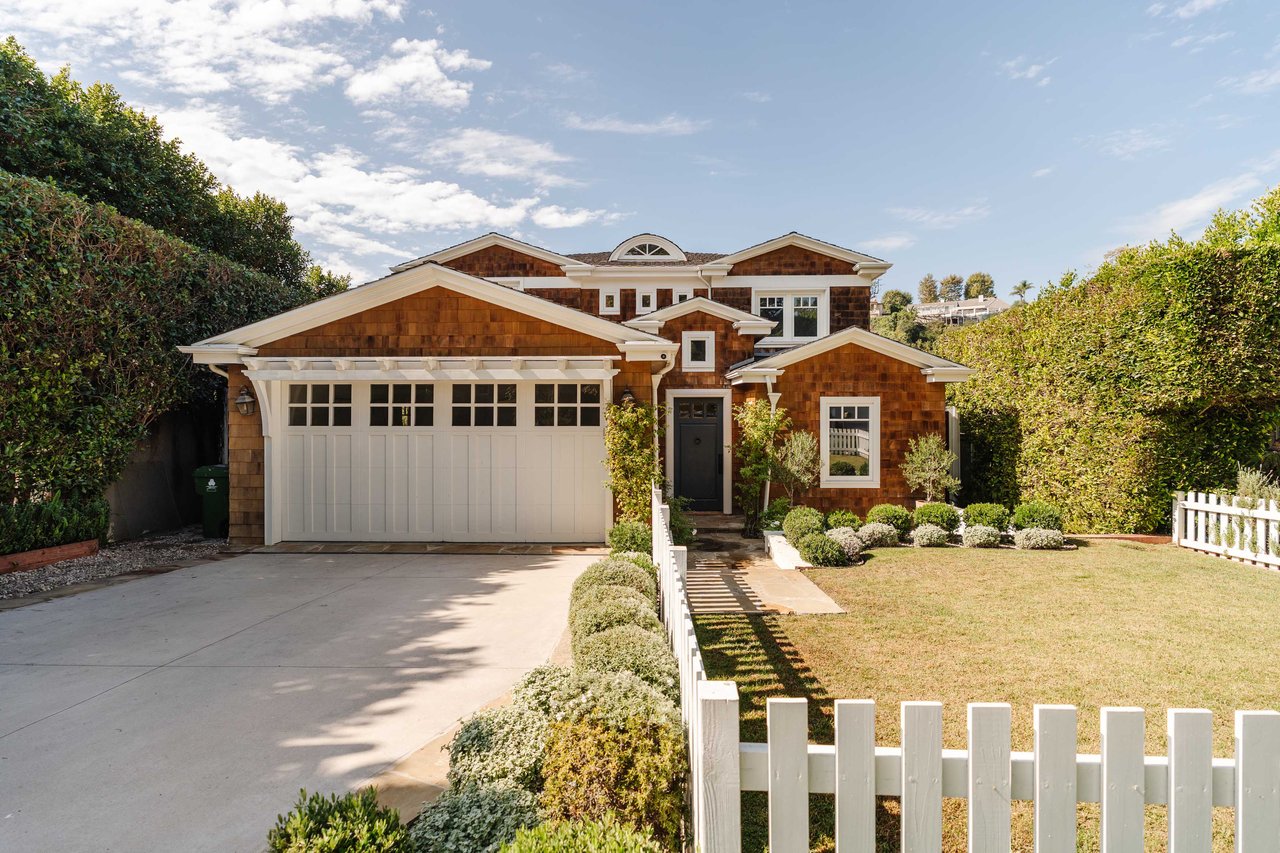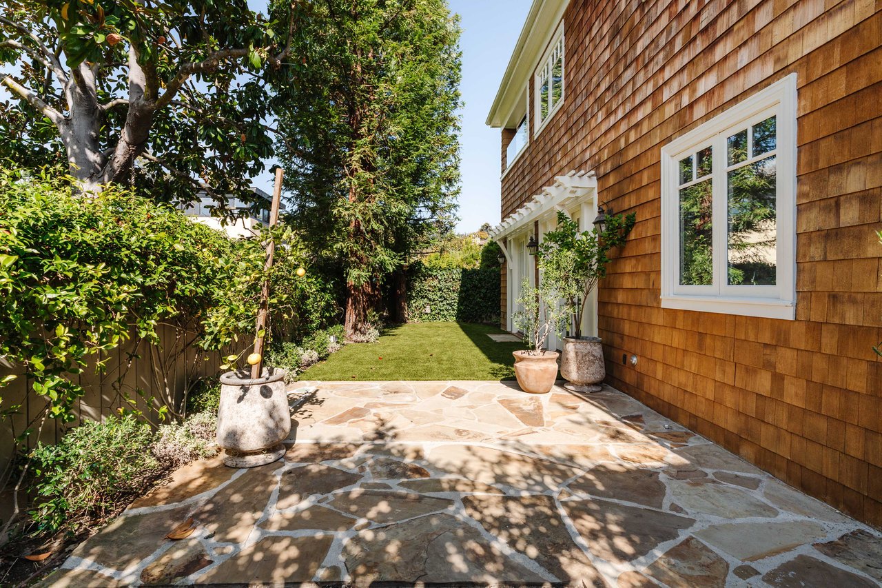 Set on a picturesque tree-lined street in the coveted Santa Monica Canyon, this private Traditional home blends modern luxury with timeless design across a thoughtful floor plan. Guests are welcomed through a gated, grassy front yard into a stately foyer with vaulted ceilings and a striking capiz shell chandelier. Hardwood floors lead past the formal living and dining rooms to the open-concept heart of the home - featuring a family room with fireplace and chef’s kitchen boasting a large island, Viking appliances, and an adjacent breakfast area. French doors open to a tranquil backyard ideal for al fresco dining, lounging, and play. A butler’s pantry and walk-in pantry connect the kitchen to the dining room. Completing the main level are a guest suite, office with built-ins, powder room, laundry room, and two-car garage. A dramatic, light-filled staircase leads to four bedroom suites upstairs. The luxurious primary suite features vaulted ceilings, a generous walk-in closet, private covered terrace with fireplace, and a spa-like bath clad in Arabescato marble with dual vanities, a large shower, and a soaking tub. All three upstairs bedrooms are ensuite with two sharing a jack-and-jill bathroom. A homework/desk area and built-ins/storage complete this level. Located within the Canyon Elementary School District, tenants also enjoy the best of the Canyon lifestyle with a short stroll to Rustic Coffee, the Santa Monica Stairs, and neighborhood favorites like Giorgio Baldi, Caffé Delfini, and the Golden Bull - plus the beach just a few blocks away. Experience refined comfort and exceptional design on one of Santa Monica Canyon’s most desirable streets.