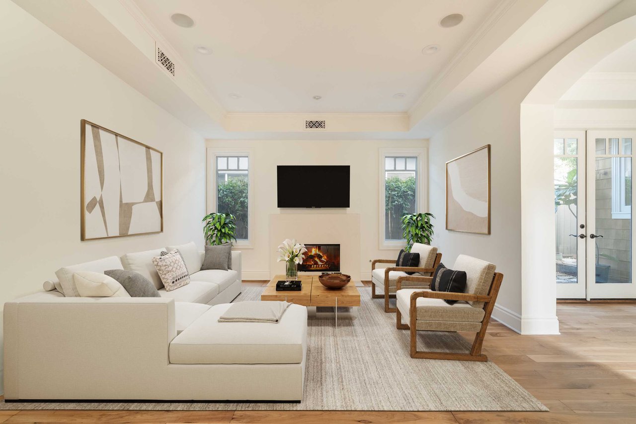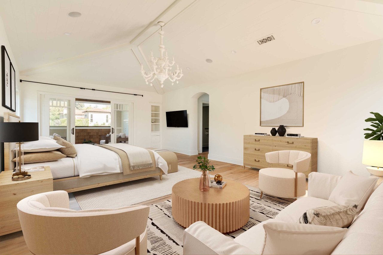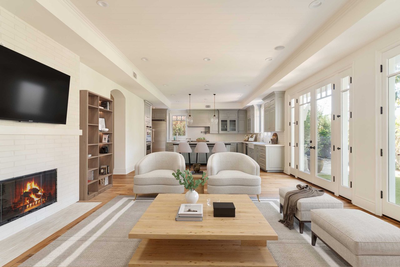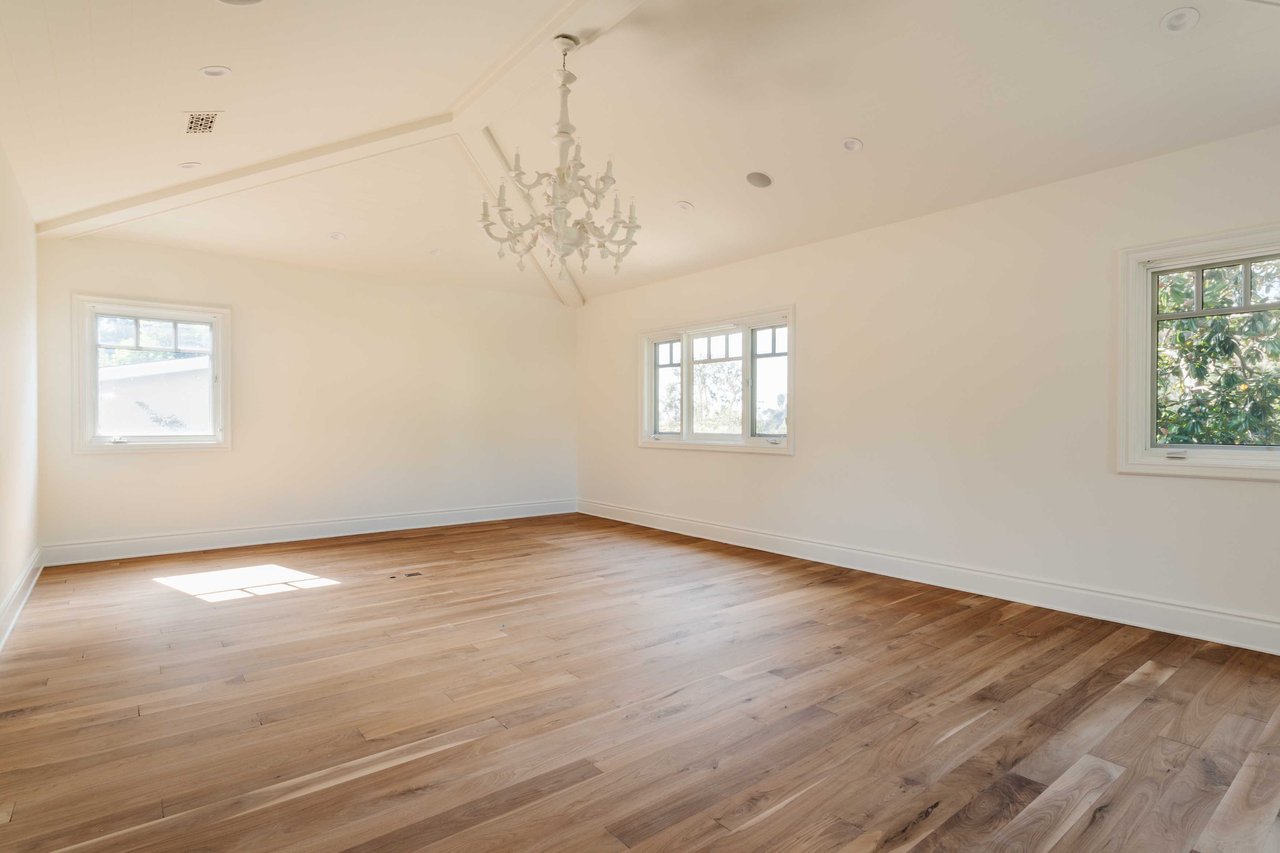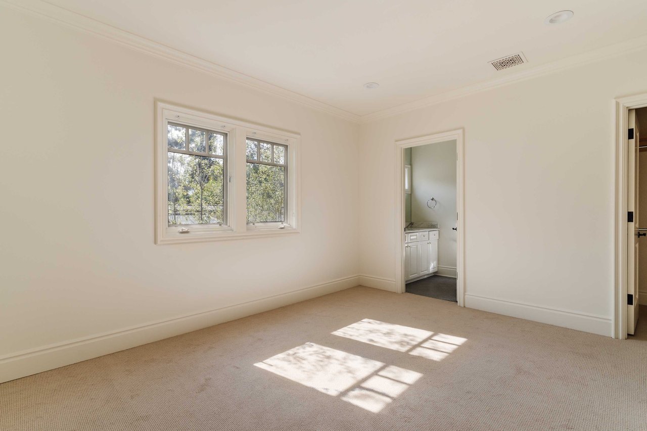 Set on a picturesque tree-lined street in the coveted Santa Monica Canyon, this private Traditional home blends modern luxury with timeless design across a thoughtful floor plan. Guests are welcomed through a gated, grassy front yard into a stately foyer with vaulted ceilings and a striking capiz shell chandelier. Hardwood floors lead past the formal living and dining rooms to the open-concept heart of the home - featuring a family room with fireplace and chef’s kitchen boasting a large island, Viking appliances, and an adjacent breakfast area. French doors open to a tranquil backyard ideal for al fresco dining, lounging, and play. A butler’s pantry and walk-in pantry connect the kitchen to the dining room. Completing the main level are a guest suite, office with built-ins, powder room, laundry room, and two-car garage. A dramatic, light-filled staircase leads to four bedroom suites upstairs. The luxurious primary suite features vaulted ceilings, a generous walk-in closet, private covered terrace with fireplace, and a spa-like bath clad in Arabescato marble with dual vanities, a large shower, and a soaking tub. All three upstairs bedrooms are ensuite with two sharing a jack-and-jill bathroom. A homework/desk area and built-ins/storage complete this level. Located within the Canyon Elementary School District, tenants also enjoy the best of the Canyon lifestyle with a short stroll to Rustic Coffee, the Santa Monica Stairs, and neighborhood favorites like Giorgio Baldi, Caffé Delfini, and the Golden Bull - plus the beach just a few blocks away. Experience refined comfort and exceptional design on one of Santa Monica Canyon’s most desirable streets.