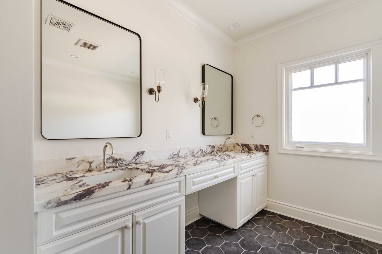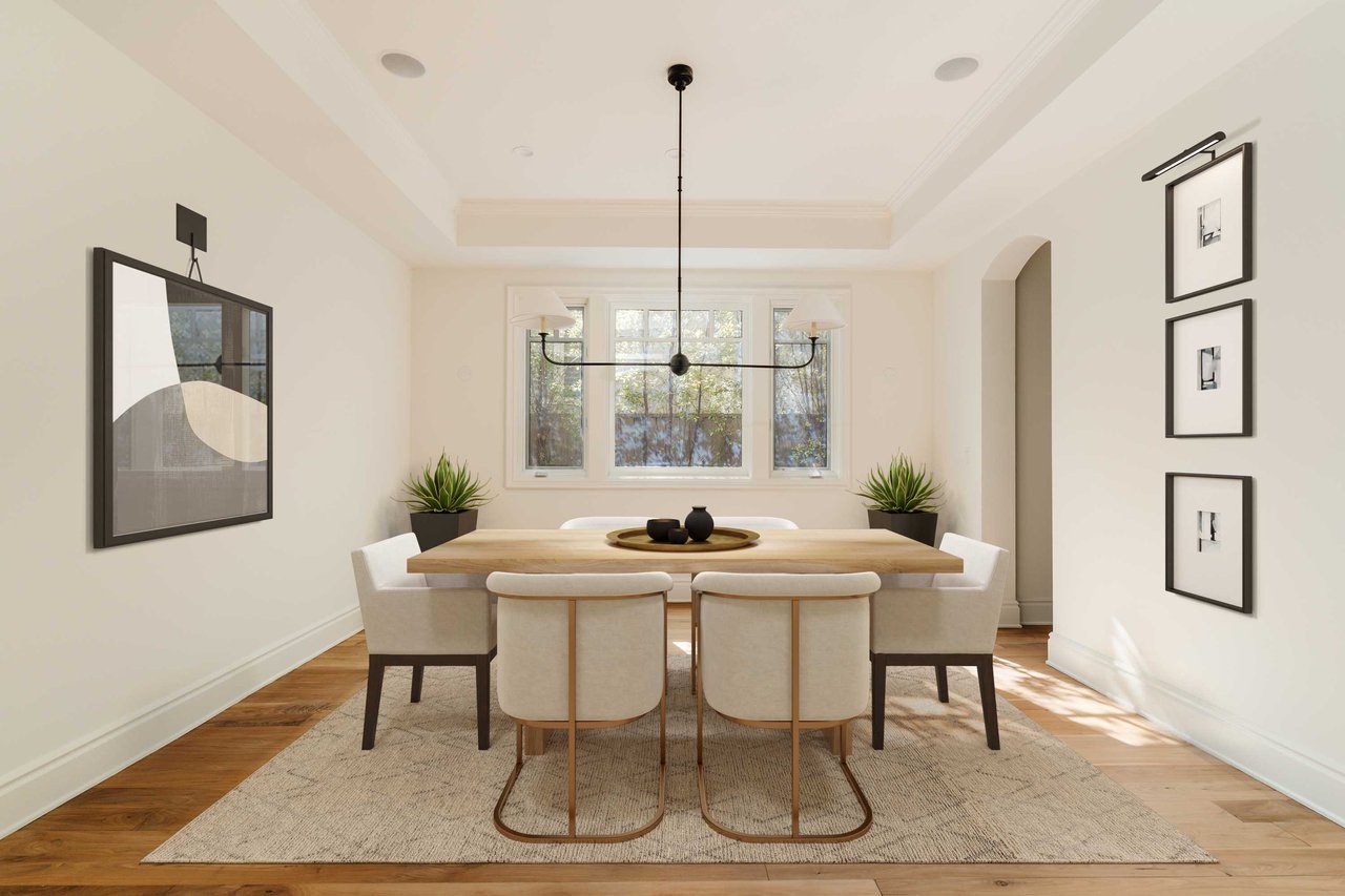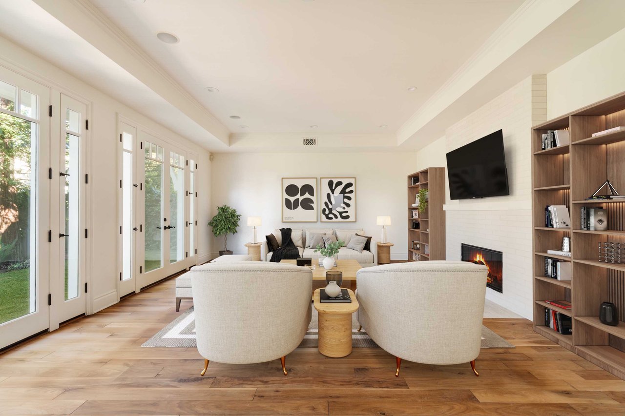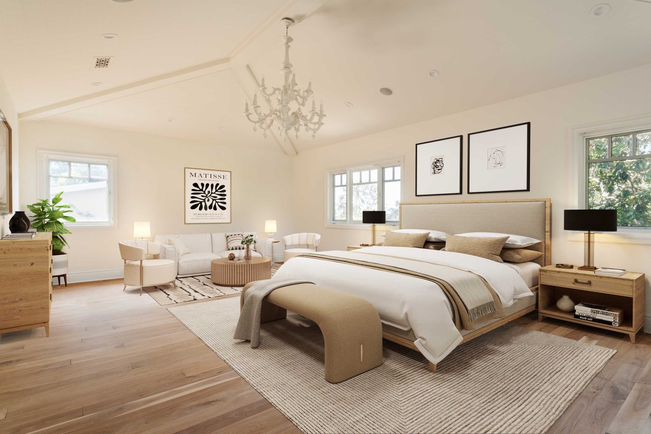 Set on a picturesque tree-lined street in the coveted Santa Monica Canyon, this private Traditional home blends modern luxury with timeless design across a thoughtful floor plan. Guests are welcomed through a gated, grassy front yard into a stately foyer with vaulted ceilings and a striking capiz shell chandelier. Hardwood floors lead past the formal living and dining rooms to the open-concept heart of the home - featuring a family room with fireplace and chef’s kitchen boasting a large island, Viking appliances, and an adjacent breakfast area. French doors open to a tranquil backyard ideal for al fresco dining, lounging, and play. A butler’s pantry and walk-in pantry connect the kitchen to the dining room. Completing the main level are a guest suite, office with built-ins, powder room, laundry room, and two-car garage. A dramatic, light-filled staircase leads to four bedroom suites upstairs. The luxurious primary suite features vaulted ceilings, a generous walk-in closet, private covered terrace with fireplace, and a spa-like bath clad in Arabescato marble with dual vanities, a large shower, and a soaking tub. All three upstairs bedrooms are ensuite with two sharing a jack-and-jill bathroom. A homework/desk area and built-ins/storage complete this level. Located within the Canyon Elementary School District, tenants also enjoy the best of the Canyon lifestyle with a short stroll to Rustic Coffee, the Santa Monica Stairs, and neighborhood favorites like Giorgio Baldi, Caffé Delfini, and the Golden Bull - plus the beach just a few blocks away. Experience refined comfort and exceptional design on one of Santa Monica Canyon’s most desirable streets.