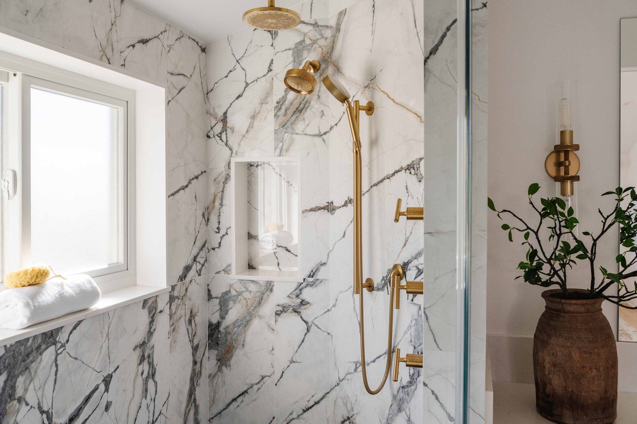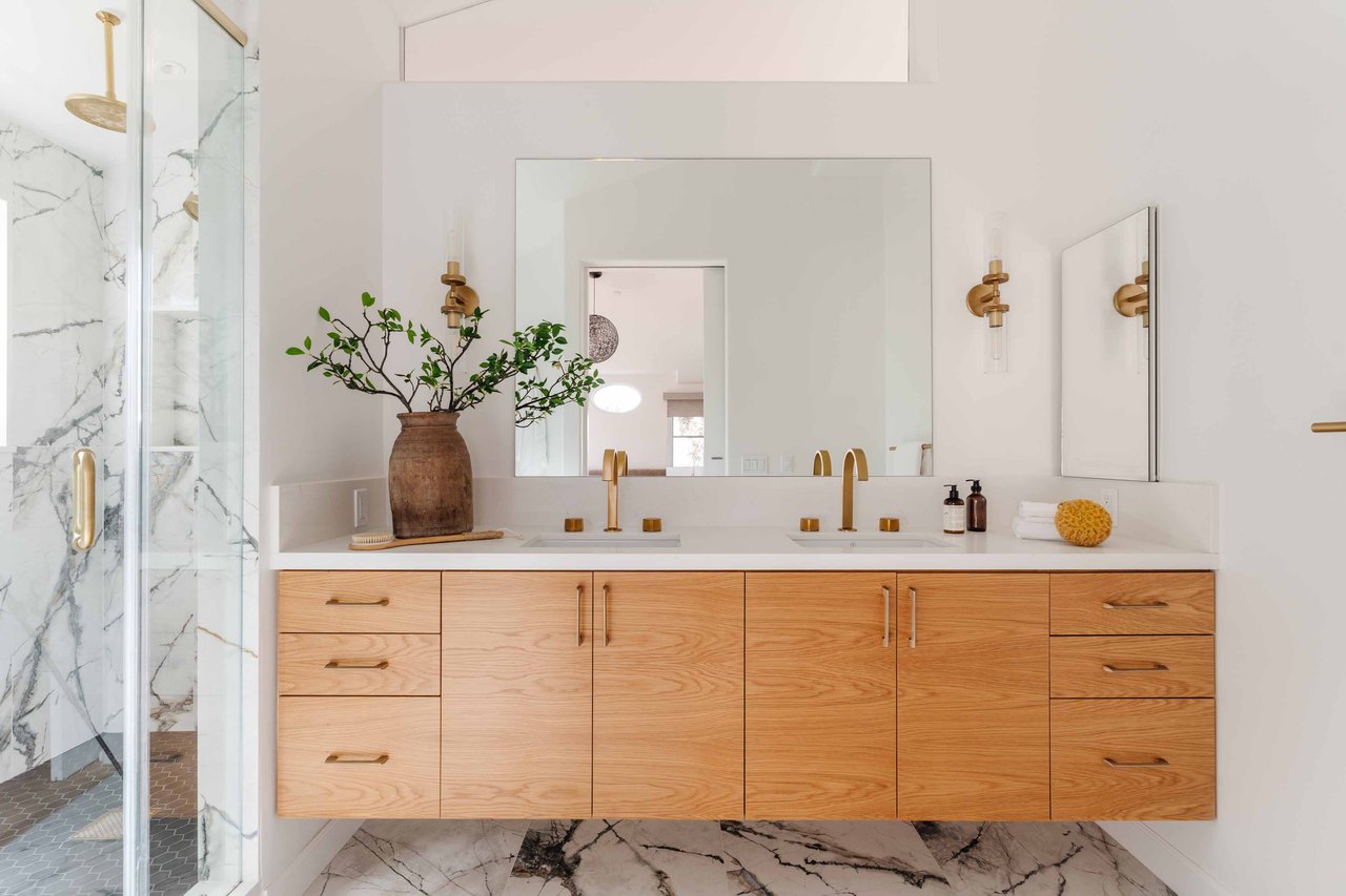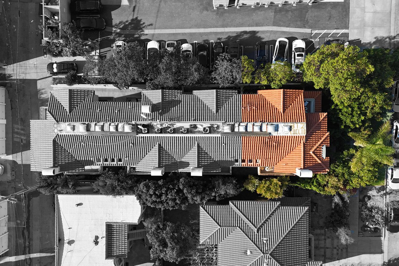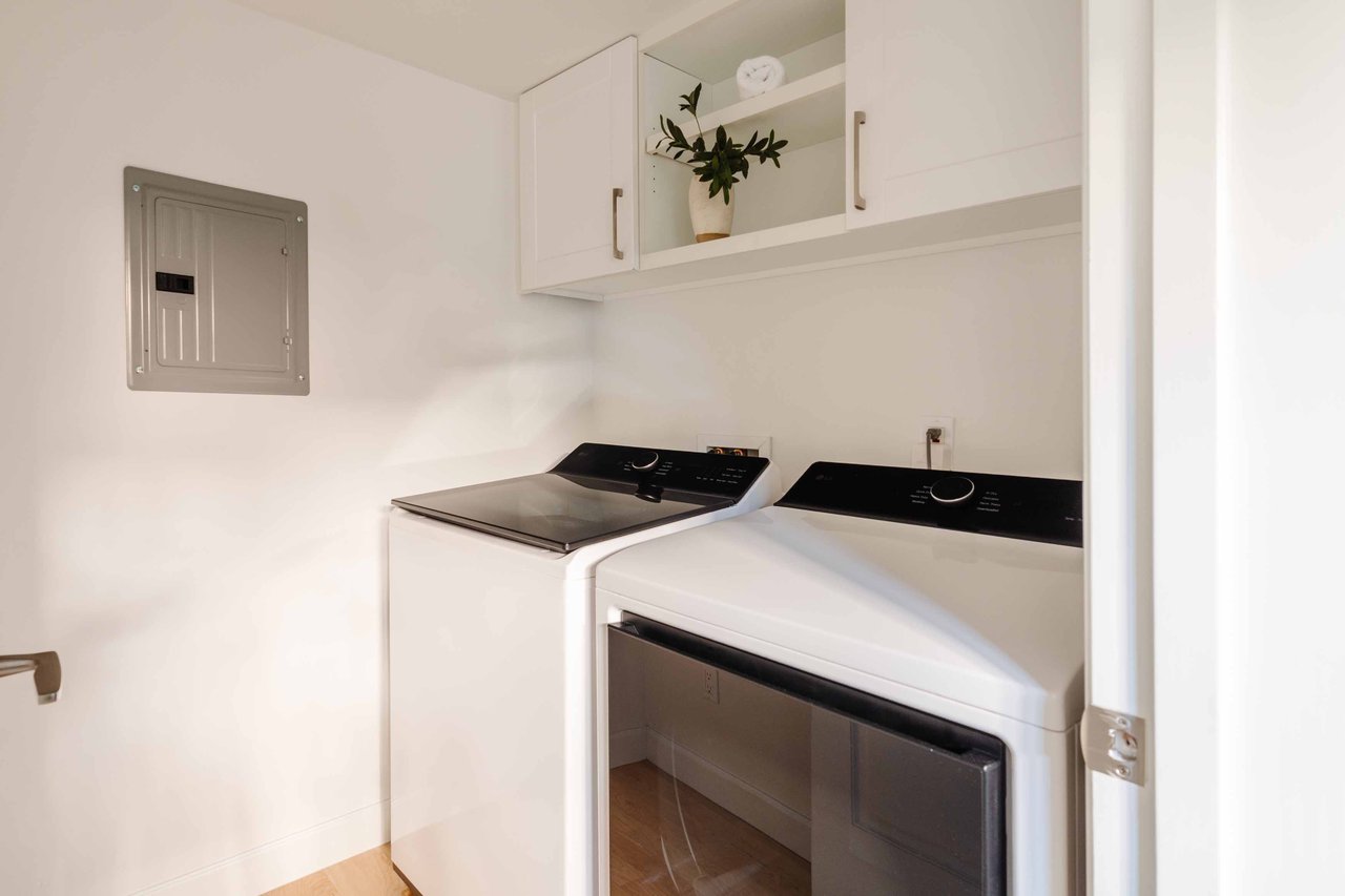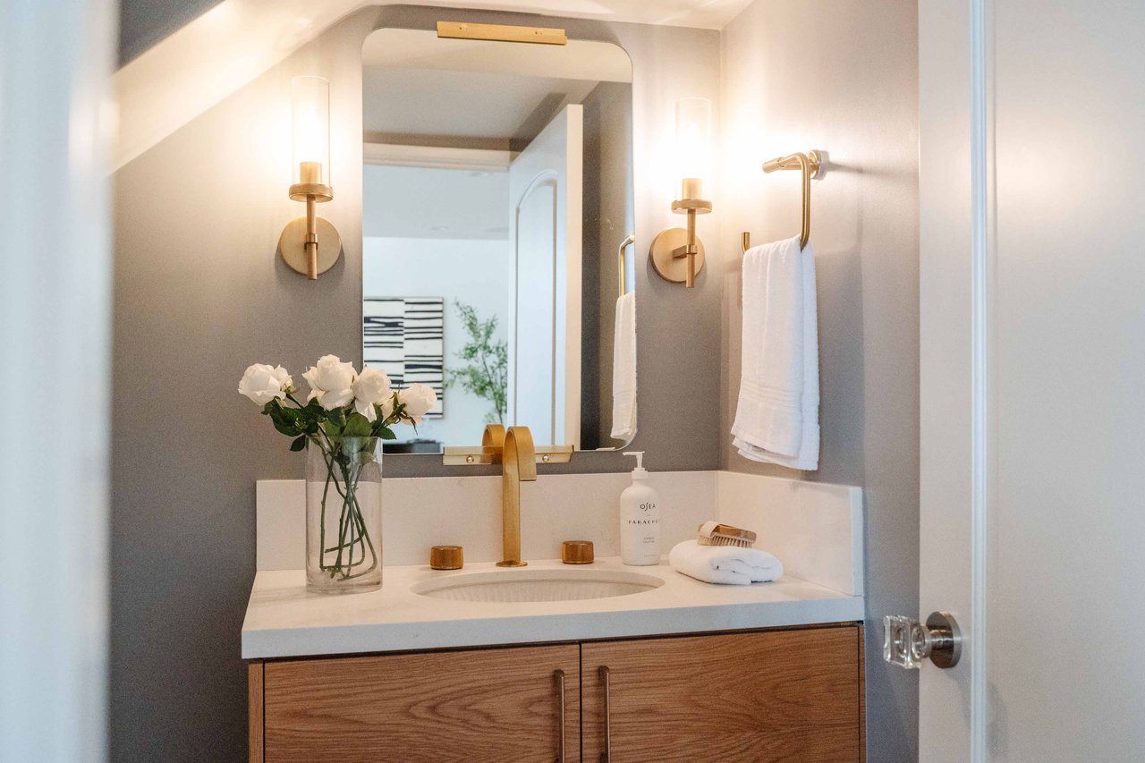 Just off Montana Avenue, this front-facing residence is the premier townhome within a gated four-unit Spanish enclave. Extensively renovated by the current owners, the 2,251-SF layout has been thoughtfully elevated with curated materials, bespoke craftsmanship, and a sophisticated modern aesthetic. Double-height ceilings, hardwood floors, clerestory windows, and gallery-style walls create an airy, sunlit great room and entry with a dramatic black stone fireplace grounding the space. The designer kitchen features custom sage cabinetry, slab stone backsplashes, Wolf and Sub-Zero appliances, and a farmhouse sink with picture window looking out to the exterior. Just beyond, an oversized private patio with a fire pit and mature landscaping offers multiple outdoor living and dining area options - perfect for entertaining or relaxation. Upstairs, a spacious lofted office with a built-in nook and covered patio overlooks the main level and provides flexible utility as a studio, gym, or additional lounge. The serene primary suite features vaulted ceilings, a fireplace, balcony, walk-in closet, and a spa-like bath with dual vanities and an oversized shower. A generous secondary bedroom suite includes its own balcony, walk-in closet, and renovated bath. Additional highlights include a renovated powder room, dedicated laundry room, state-of-the-art air and water filtration systems, and a private two-car garage with storage inside the gated subterranean parking. Originally built for the developer’s personal use and situated just feet from Montana Avenue’s boutiques and cafés, this rare offering blends privacy, design, and turnkey luxury in one of Santa Monica’s most sought-after locations.