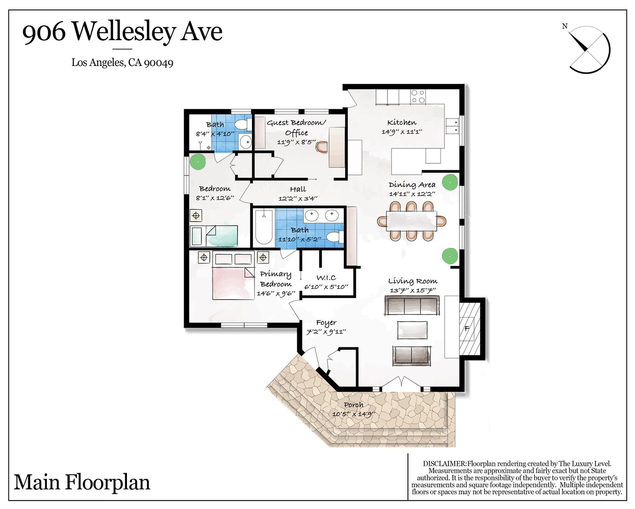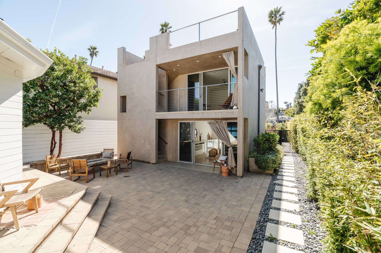 Set in the heart of Brentwood, this one-of-a-kind property features a charming 1924 bungalow-style main house paired with a modern guest house. Through the gated entry find an expansive front yard that flows to the main house. Guests are welcomed by an inviting Dutch door to the foyer and main living space with an open floorplan. The living room boasts wood beams, a fireplace, and French doors to the yard - encouraging indoor-outdoor living. The dining area is apt for dinner parties large or small and leads to the updated kitchen with a breakfast bar, top appliances, and access to an outdoor area with a built-in BBQ. The primary bedroom suite is adorned by a large walk-in closet and bathroom with shower, bathtub, and dual vanities. A guest suite and a dedicated office are located down the hall. Through the courtyard with a lounge area with firepit are the guest house and garage structure. The larger garage has been converted to living/flex space with a bathroom, refrigerators, and dishwasher - perfect for entertaining or an incredible home office/gym. Upstairs via a gated entry is an incredible guest suite with a large bedroom, huge shower, and sumptuous walk-in closet. This structure also features a rooftop deck boasting multiple lounge areas, an outdoor shower, and city/mountain views. The smaller garage hosts the laundry area. Set on a nearly 6,000-square-foot lot, this offering has an added potential to reimagine or fully develop into your dream Brentwood home. Don’t miss this one.
